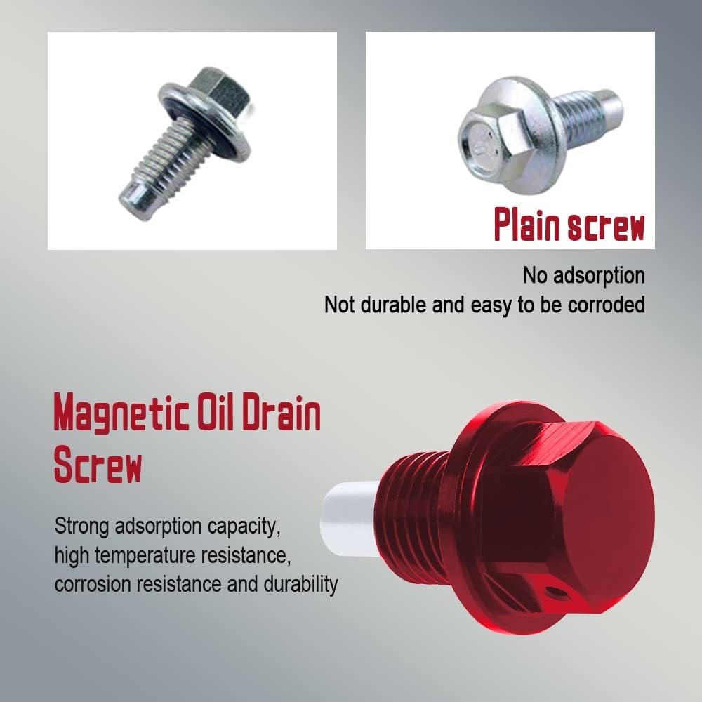 [Quality material] : M14×1.5 stainless steel oil drain plug, combined with high strength anodized aluminum alloy and neodymium magnet, designed for high temperature environment, effective adsorption of iron particles, strong wear resistant, suitable for long-term use