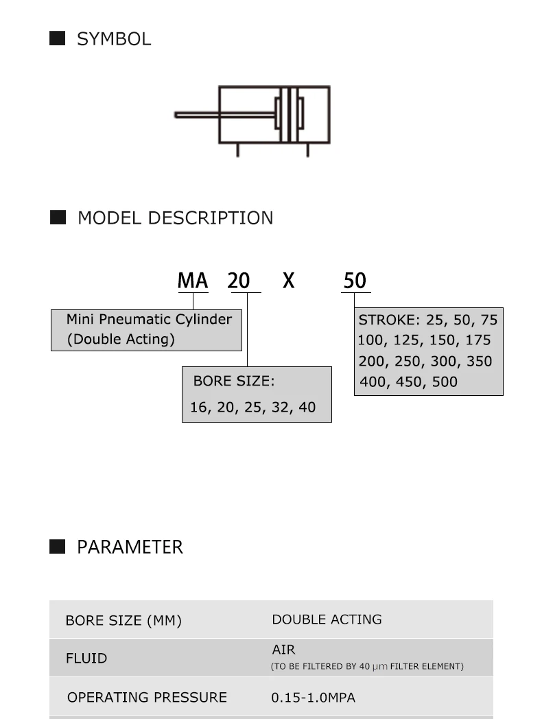 8 reviews for MA 16/20/25/32/40mm Stainless Steel 25-500mm Stroke Double Acting Mini Pneumatic Air Cylinder