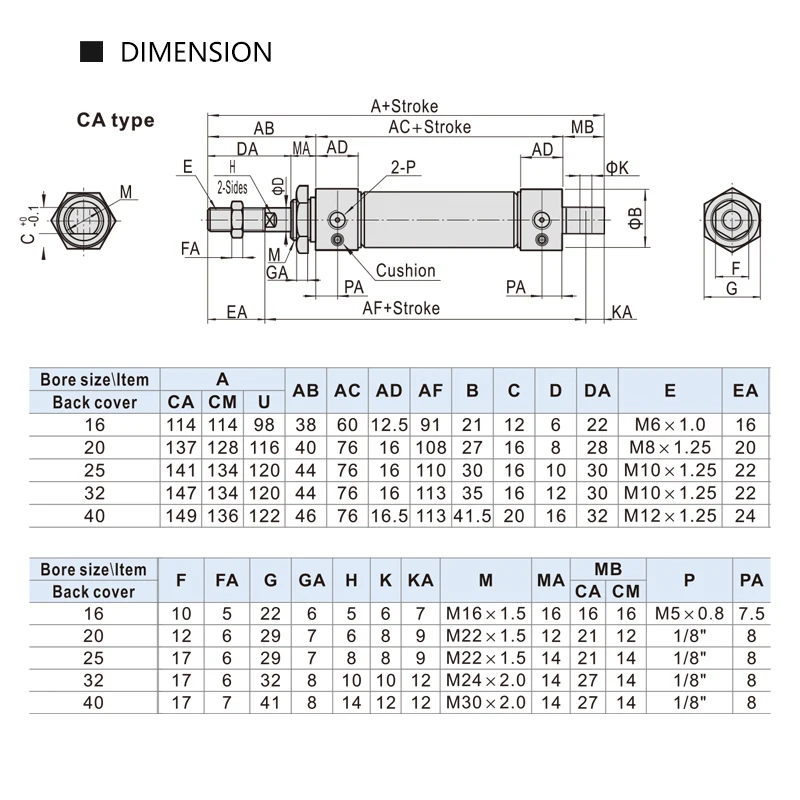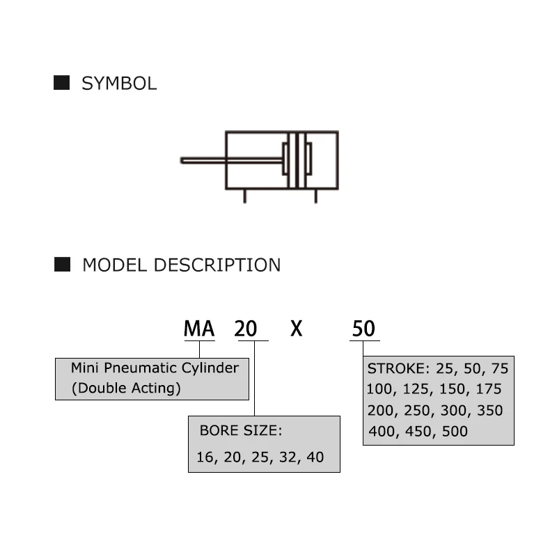 8 reviews for MA 16/20/25/32/40mm Stainless Steel 25-500mm Stroke Double Acting Mini Pneumatic Air Cylinder