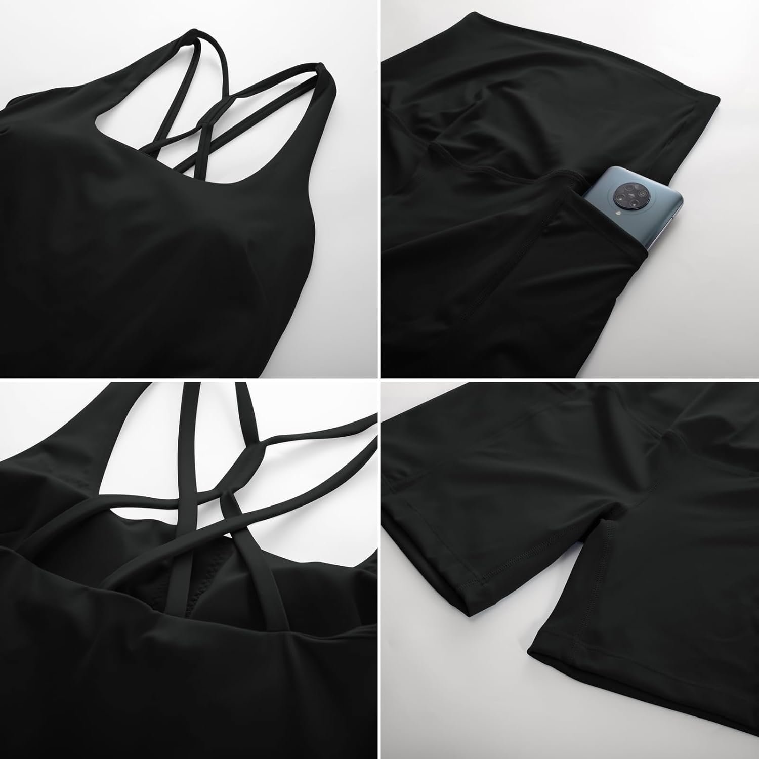 Maacie Maternity Tennis Dress with Shorts and Built in Bra Scoop Neck Sleeveless A-line Workout Golf Dress with Pockets