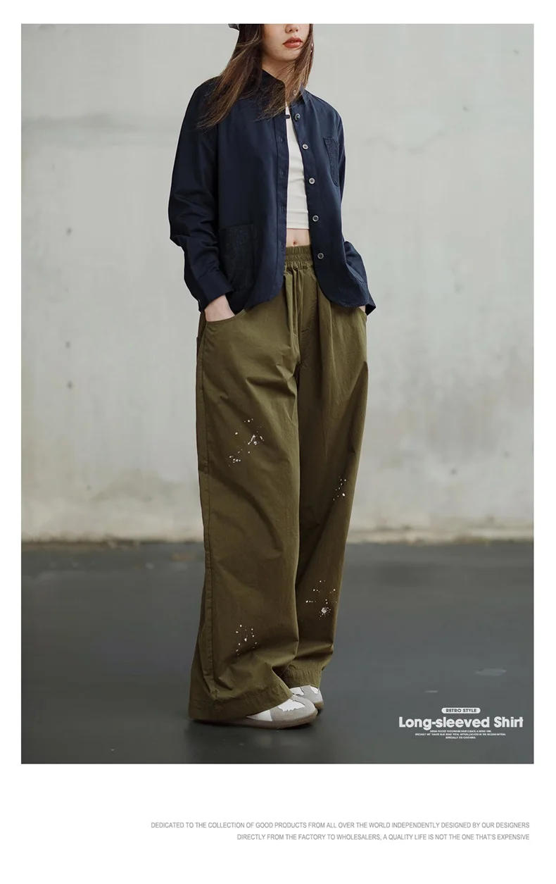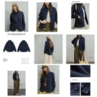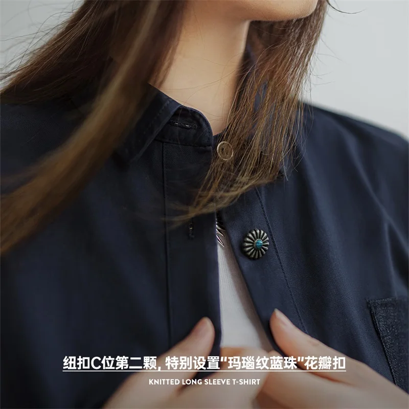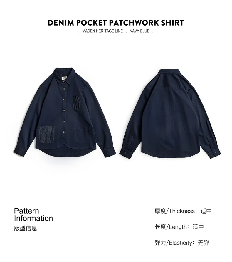 8 reviews for Maden Denim Pocket Patchwork Shirt for Women Long-sleeved Casual Jacket Navy Blue Cotton Shirt Fall Blouses Streetwear Tops