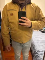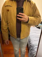 Cool, thick, vintage jacket for early autumn and spring. Pleasant color and style. In general, everything is stylish and top-notch. 3XL for Russian size 52-54 and height 188 with room for fleece. Recommend