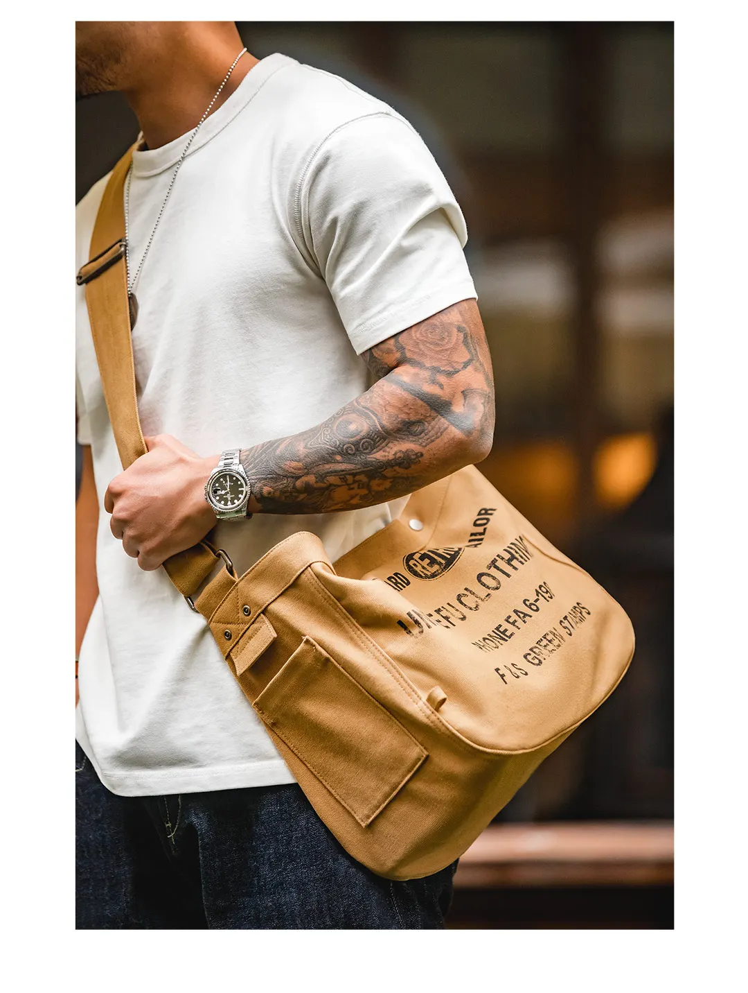 Maden Vintage Large-capacity Magnetic Buckle Crossbody Newsboy Bag Letter Design Canvas Motorcycle Computer Tote Messenger Bags