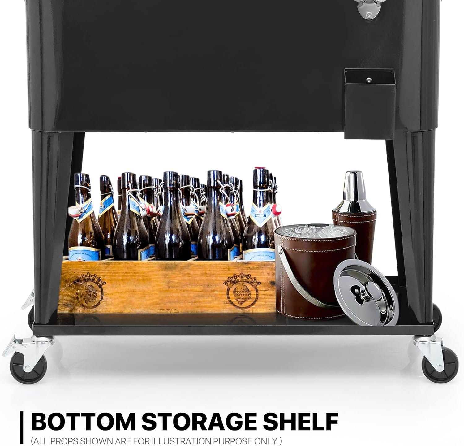 Bottom Shelf Rack for Additional Storage – Designed to provide extra space to store additional drinks, cases of beer, soda, or other alcoholic or non-alcoholic beverages. Or can be used for plates, napkins, utensils, etc.