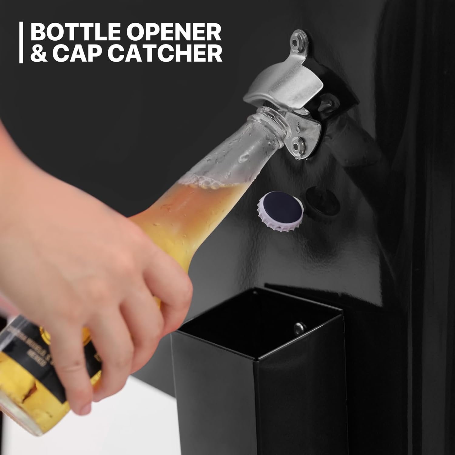 Functional Benefits – There has a bottle opener and bottle cap catcher attached to the side, this design helps you drink cold drinks quickly and easily. Overall a one-stop beverage station.