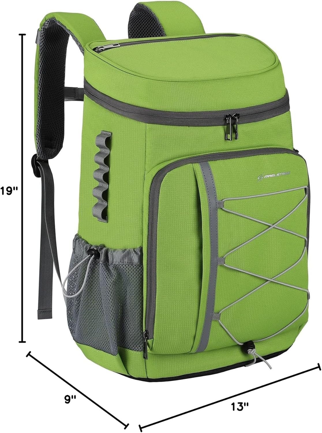 Spacious and Organized: The Maelstrom insulated backpack features a large capacity and multiple compartments, measuring 12.87”x 8.97”x 18.72”(LxWxH). This Leak-proof backpack cooler can hold up to 35 cans (32L).With a roomy zipper main compartment, top zipper pocket, front zipper pocket, front elastic rope net, front cutlery storage bag, 2 mesh side pockets, hidden back zipper pocket, and a shoulder strap card pocket, it provides convenient storage for all your needs.