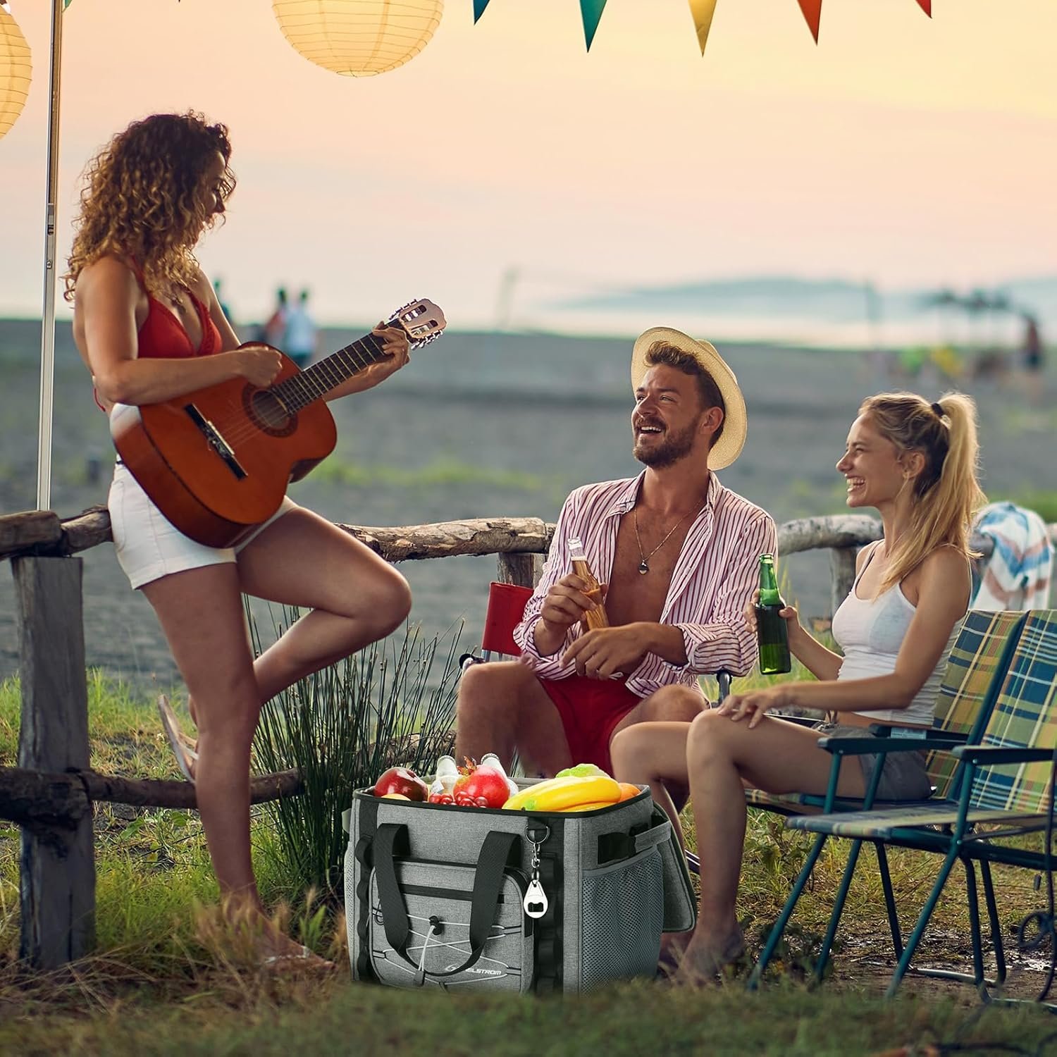 Collapsible and Portable: This portable cooler can be widely used when you go camping//Beach/hiking/Grocery Shopping/Kayaking/Road Trips. You can fold the leakproof ice chest effortlessly when not in use, which is space-saving.