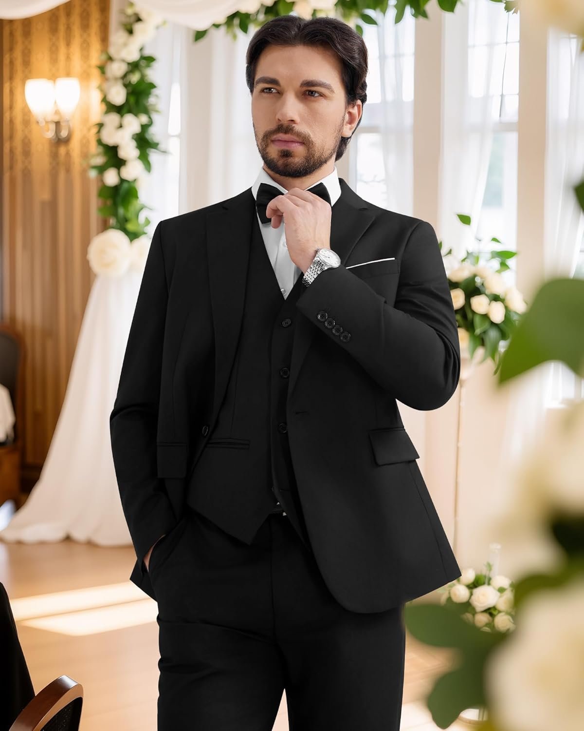 MAGE MALE Men’s 3 Pieces Suit Elegant Solid One Button Slim Fit Single Breasted Party Blazer Vest Pants Set