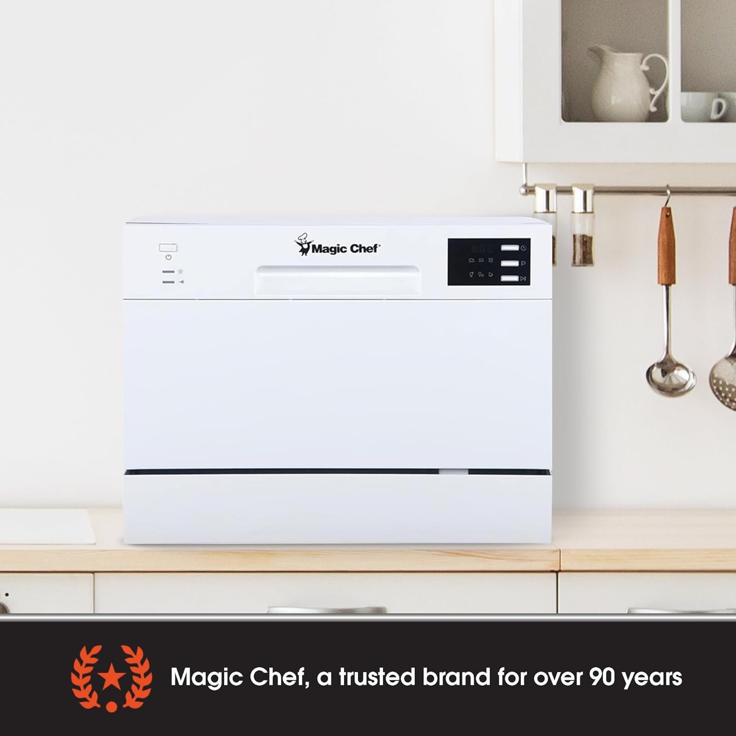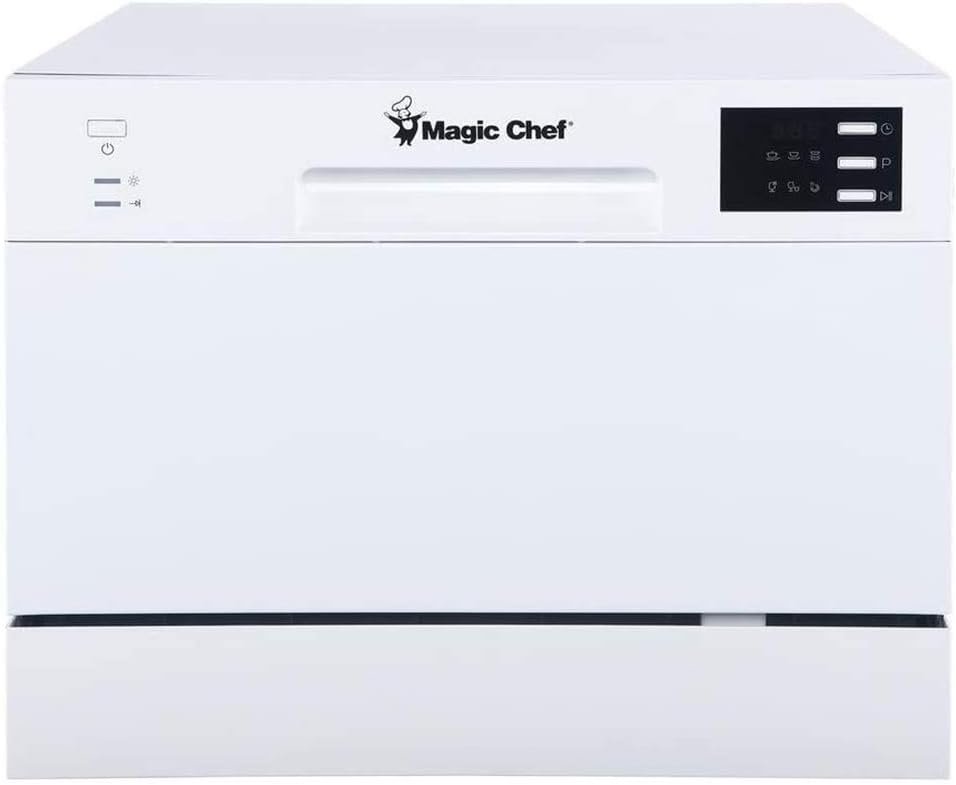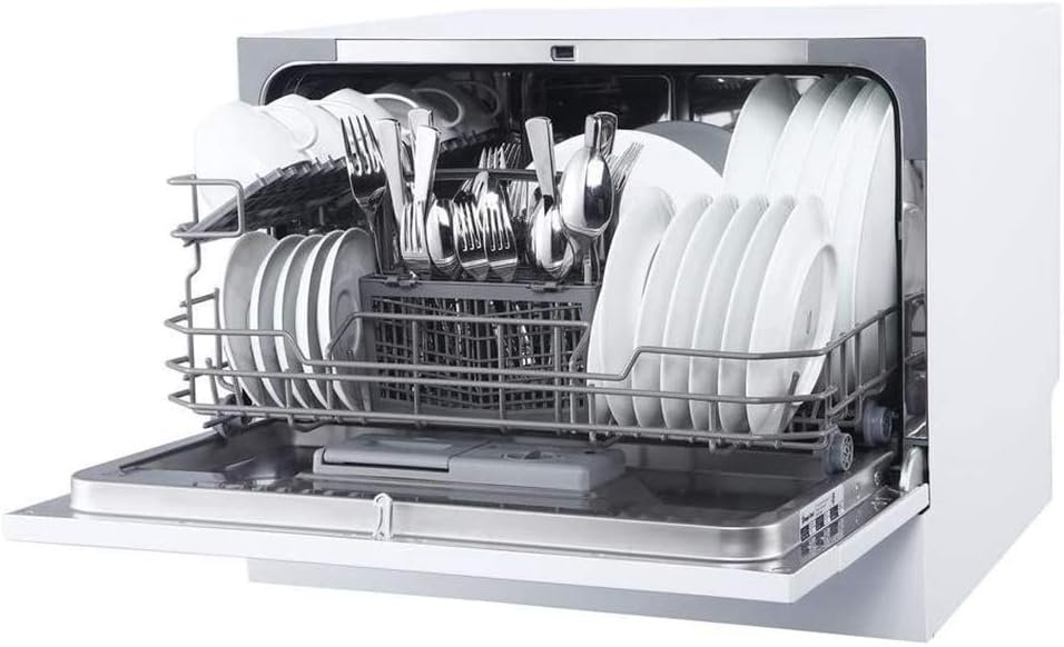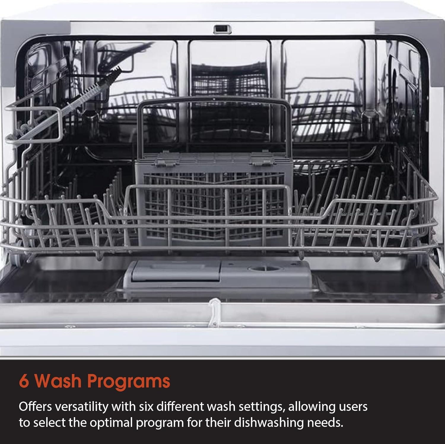 ENERGY STAR DISHWASHER: Small, Energy Star-rated countertop dishwasher can hold up to 6 place settings and features 6 wash programs; Includes 24-hour delay and EZ Clean removable filter