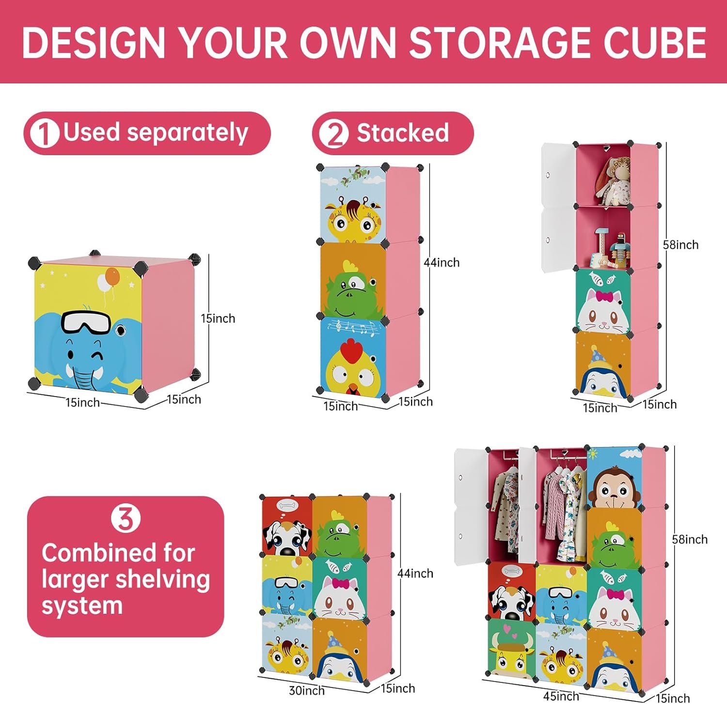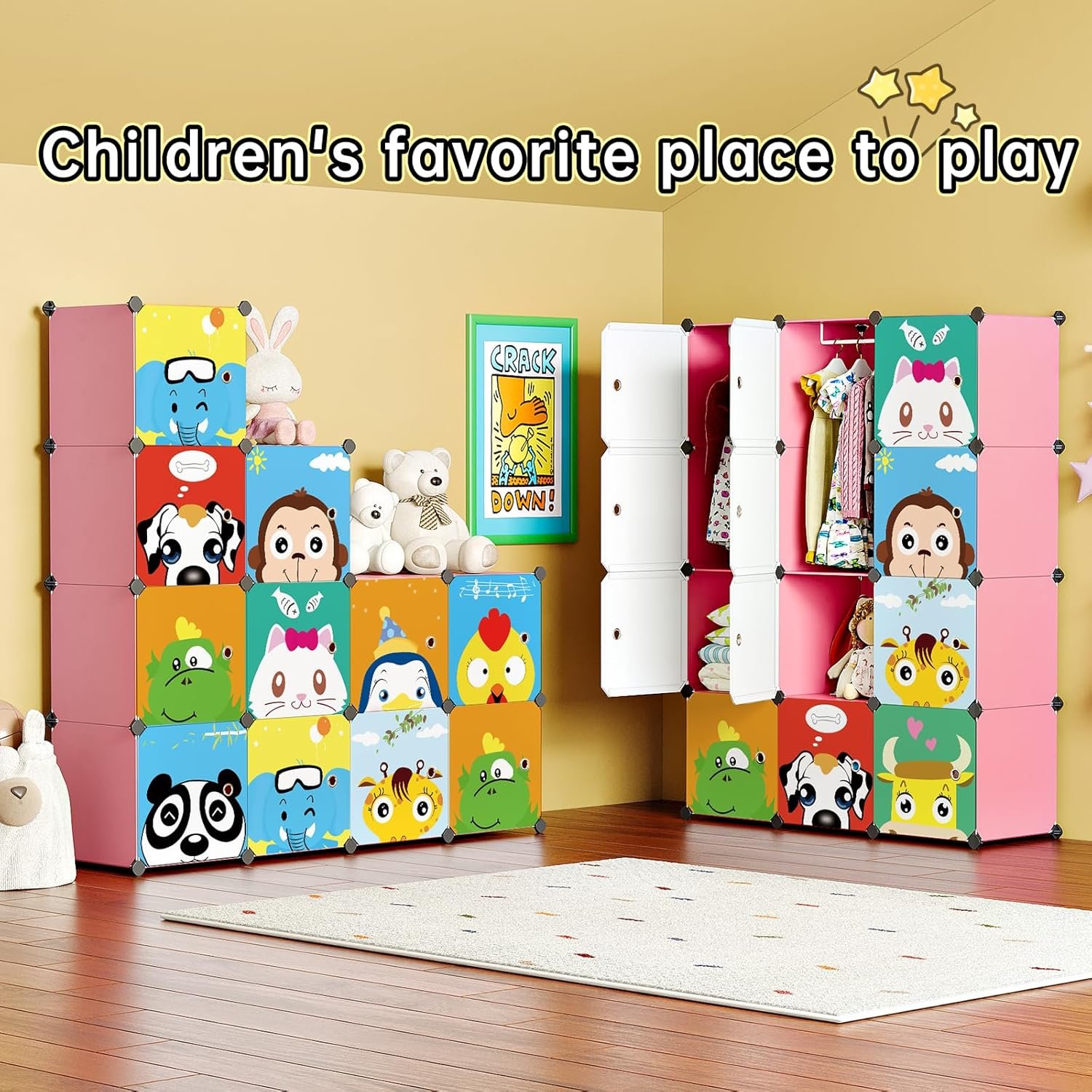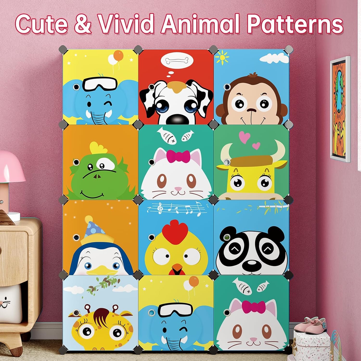 Featuring lively Cartoon Animals scenes that depict kids’ favorite characters, these organizers are sure to be fast favorites.The door can be disassembled freely, and you can choose not to use the door according to your needs.