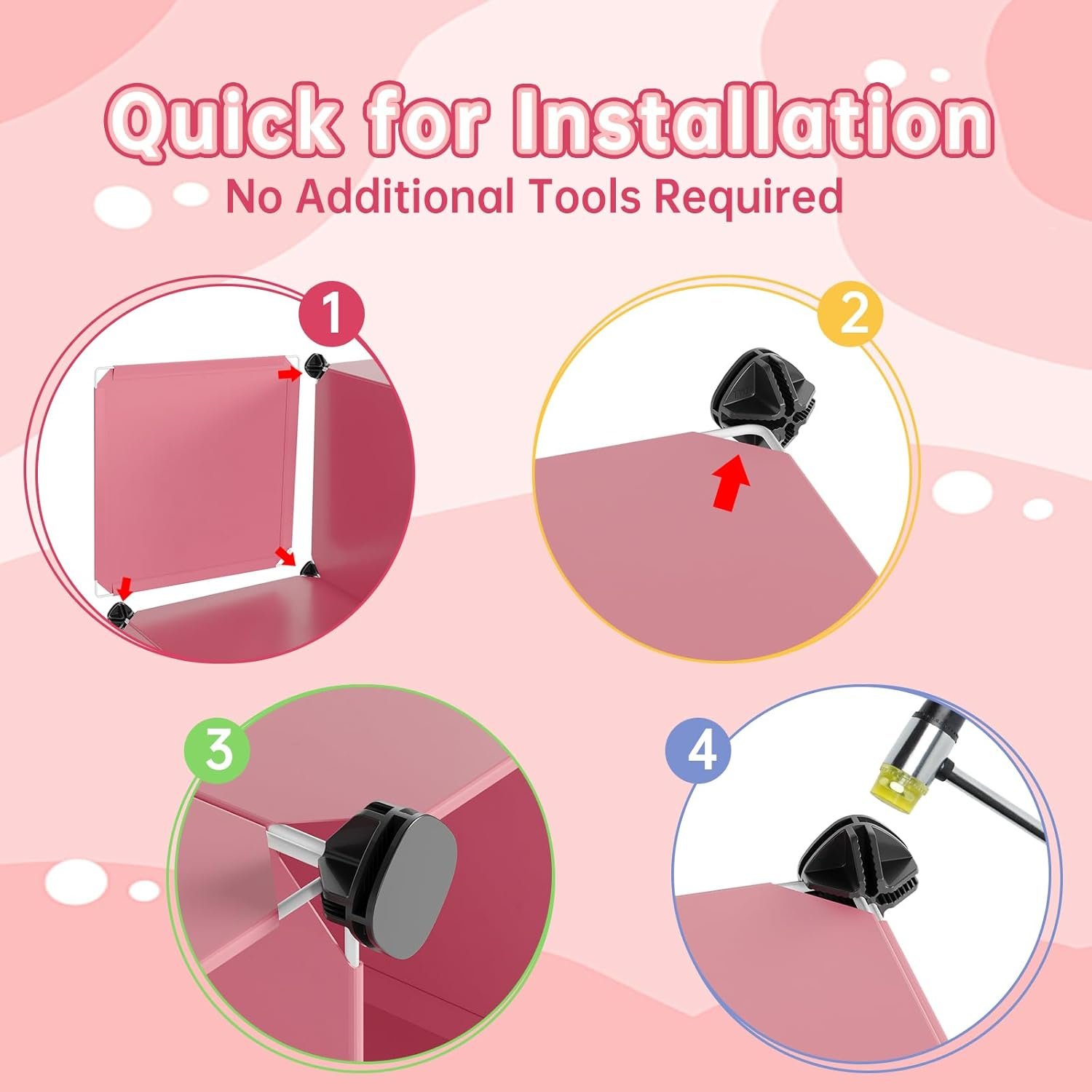【SMART & HASSLE-FREE ASSEMBLY】MAGICAL PANELS and multi-angle connectors are easily attachable to each other, it is much easier than installing normal wooden furnitures. Our doors are more convenient than the zippers applied for other normal portable wardrobes. Doors can be tied together by cable ties we provide, and the doors feature a hole handles for air circulation.