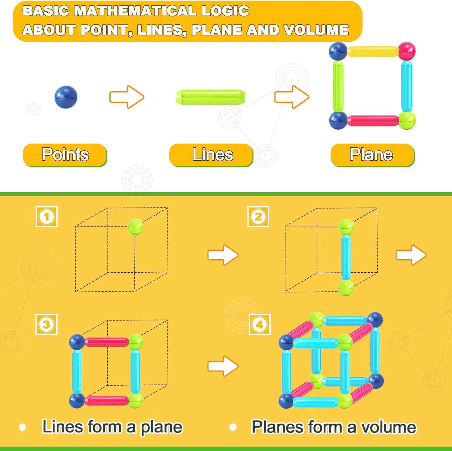 🎁【MAGNETIC TOYS FOR POINT & LINE TO PLANE】Looivo magnetic toy set consists of Balls and sticks is the same as the points and lines in geometry. Compared with other magnet toys, it is easier for beginners to understand 2D to 3D. And the magnetic combination of “click” together is easier for children to build and reduce learning anxiety. Highly recommended for toddlers and over 3 years old boys girls.