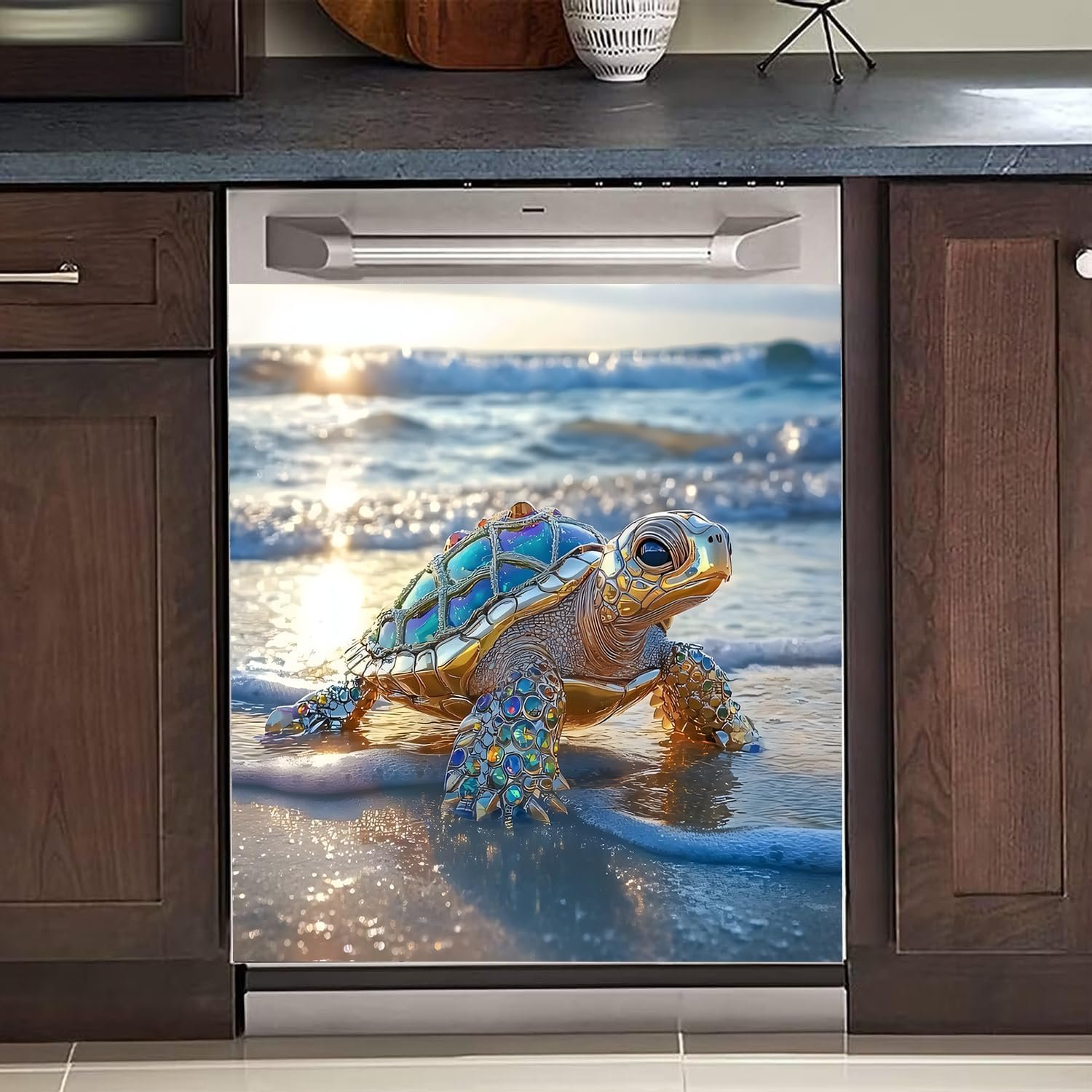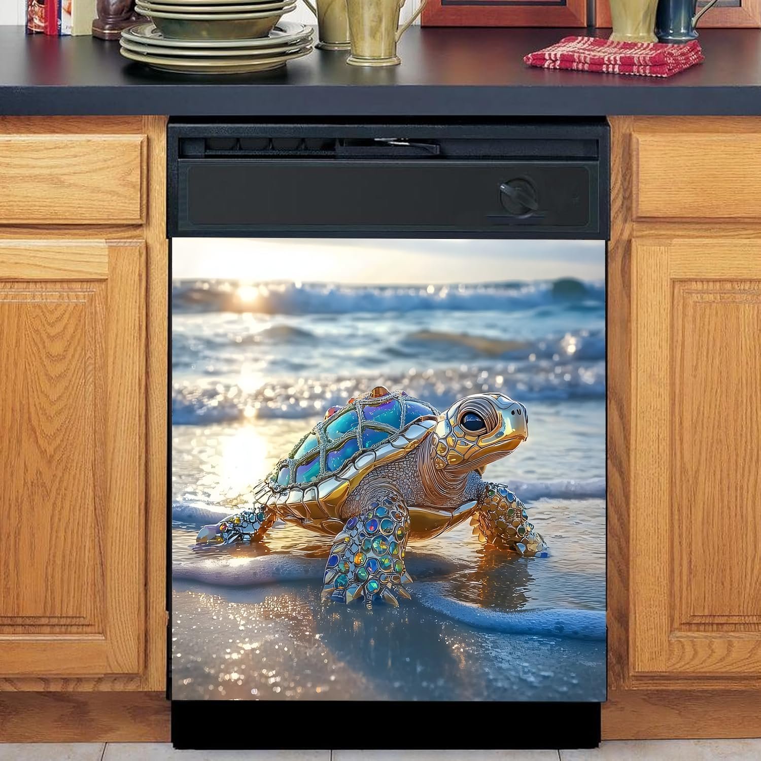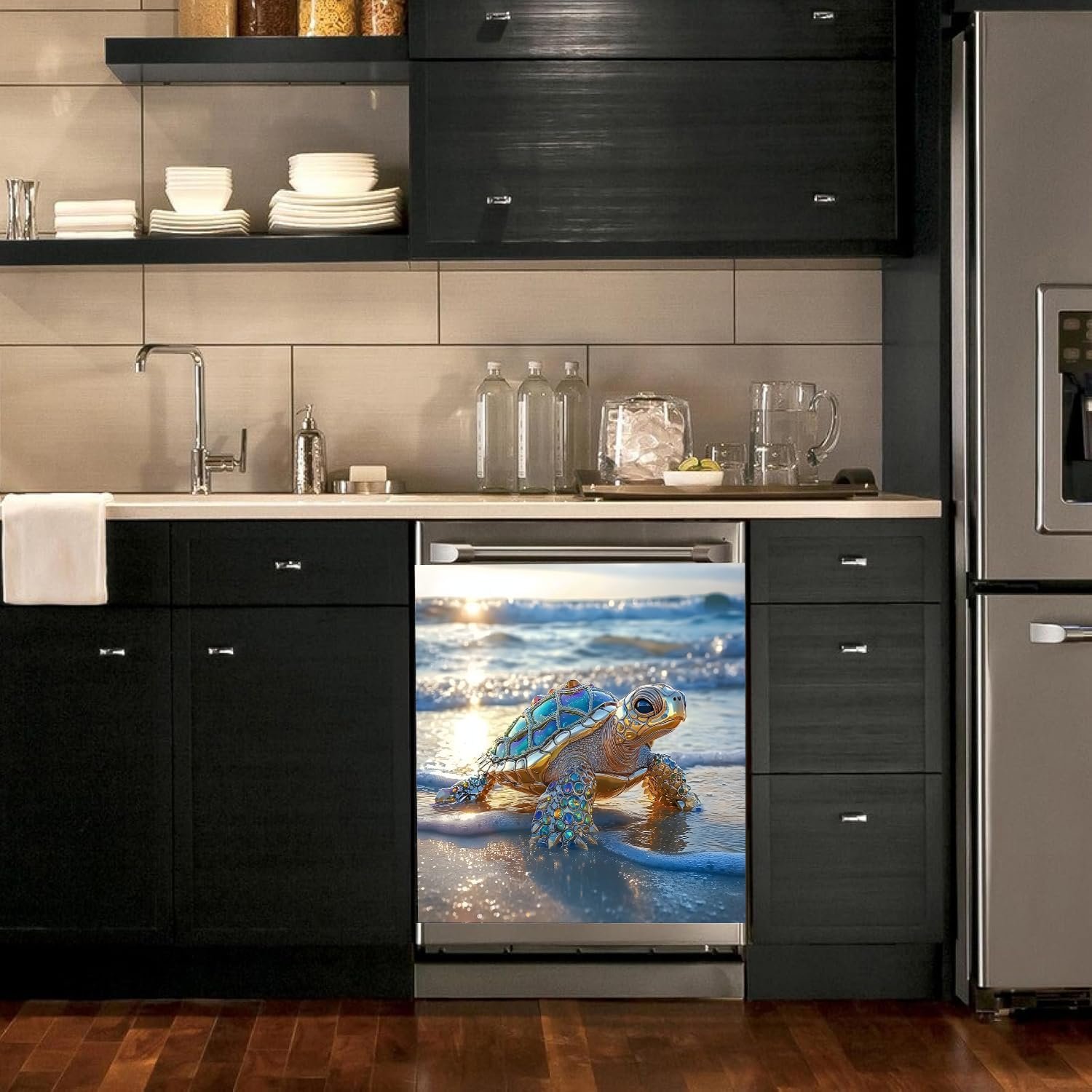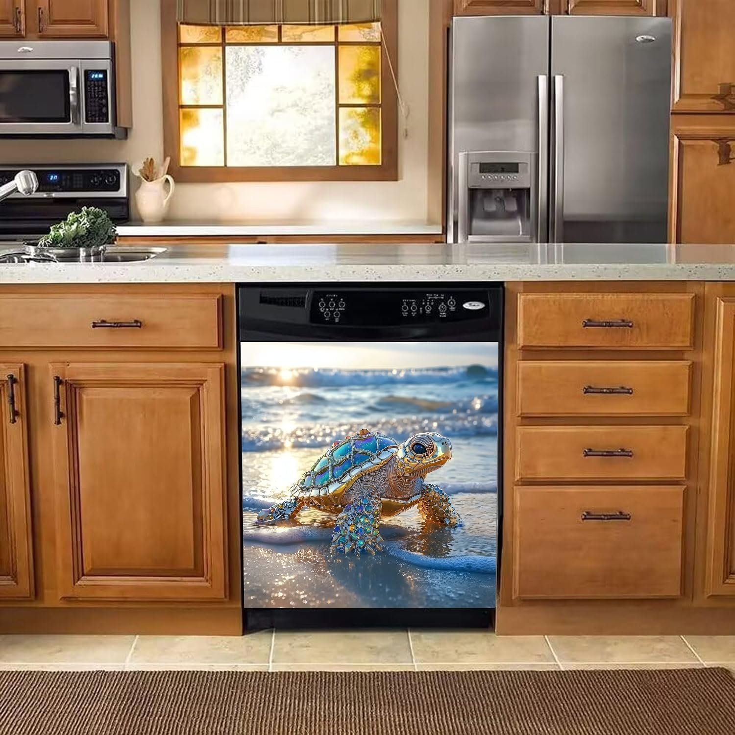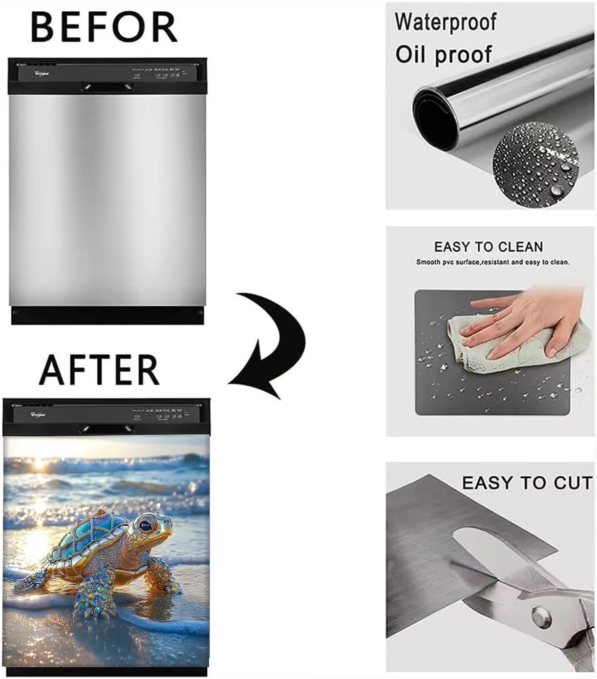 Magnetic Dishwasher Sticker, Reusable Washer Refrigerator Panel Sticker Cover, Easy to Trim Home Appliance Decorative 23” Wx26” H (Sea Turtles, 23″ Wx26 H)