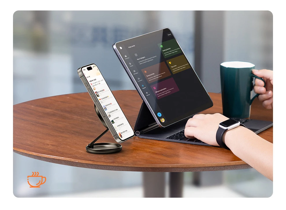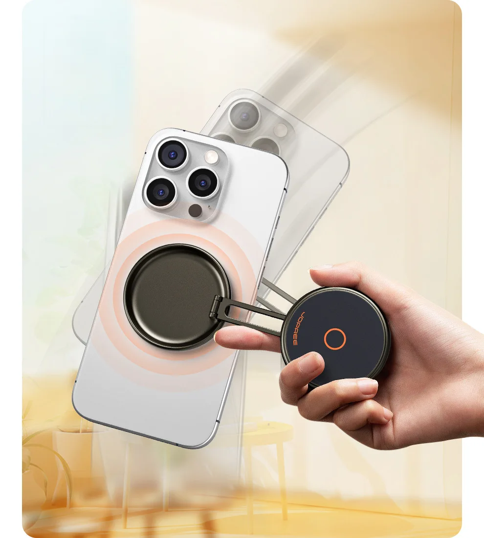 The magnetic holder securely attaches to any metal surface, providing hands-free convenience for calls, videos, or webinars.