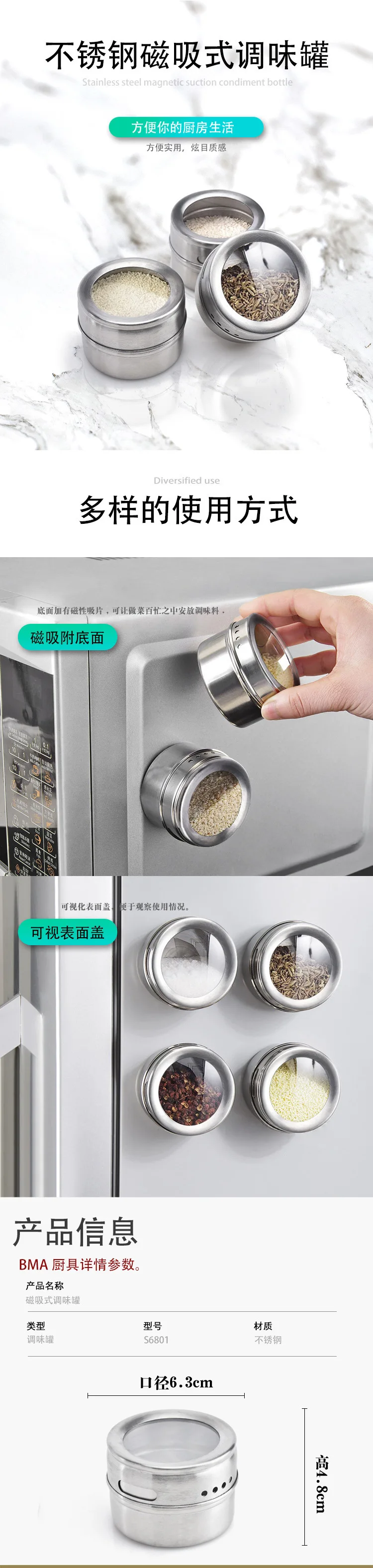 Practical jars, stuck on the refrigerator, very convenient.