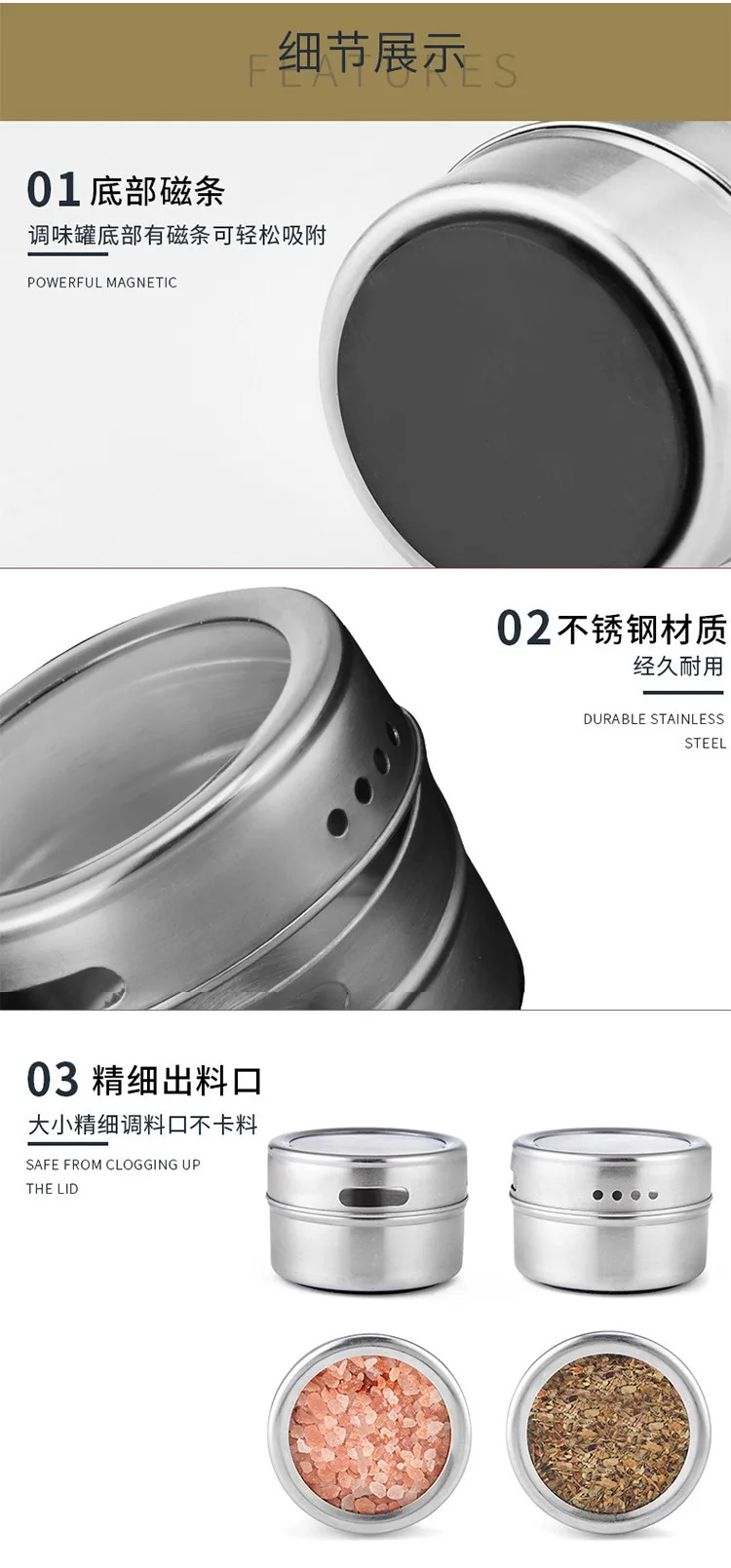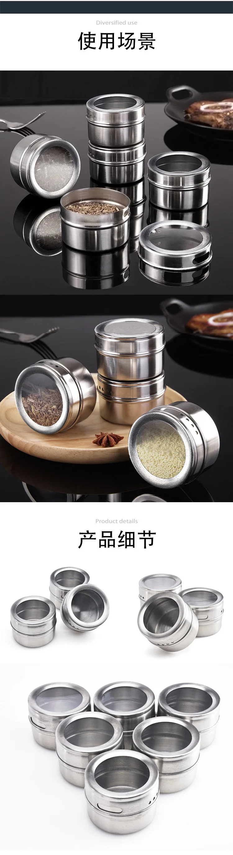 Magnetic Spice Jars With Wall Mounted Rack Stainless Steel Spice Tins Spice Seasoning Containers With Spice Label Salt Shaker