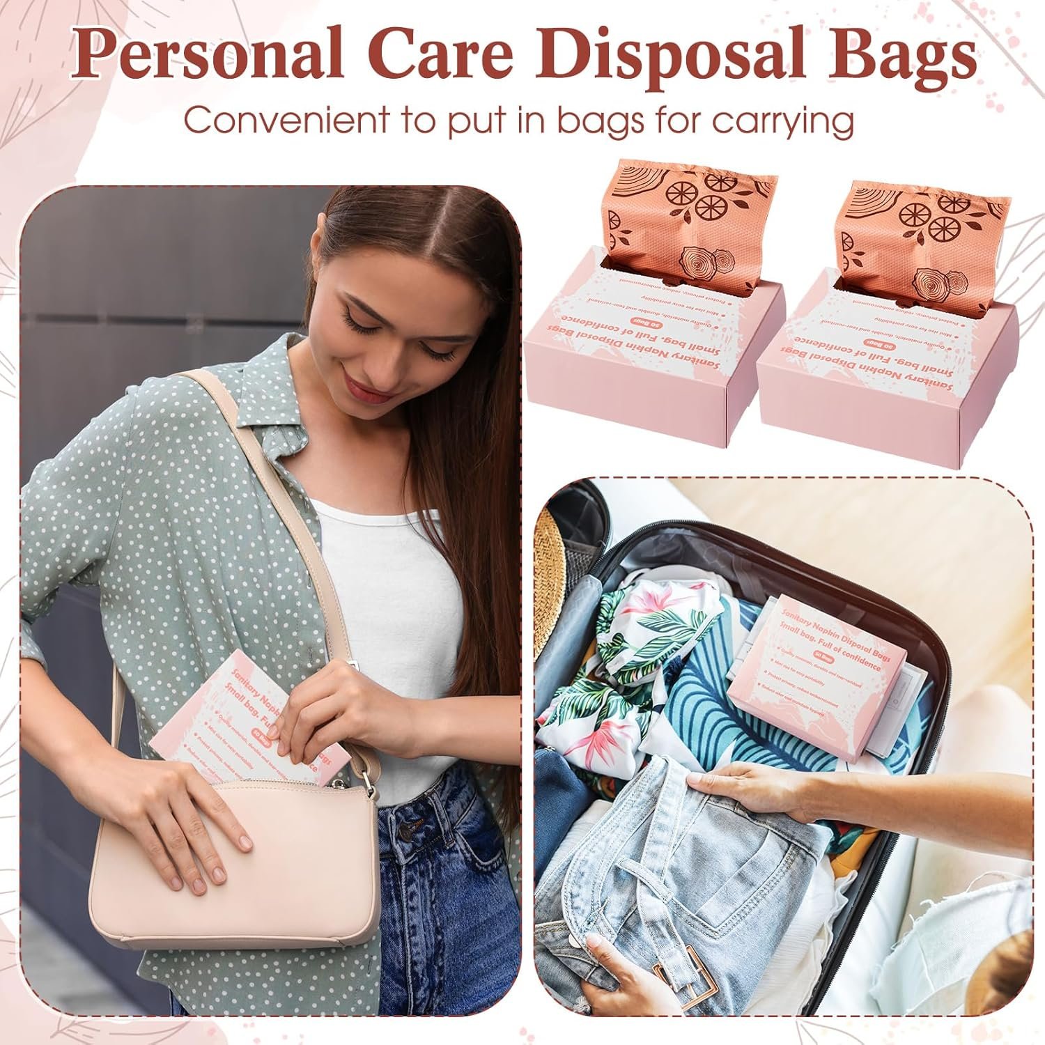 Discreet Privacy Protection: our sanitary disposal bags for women feature various printed designs that effectively conceal contents; Good for home or outdoor use, they protect your privacy, maintain room cleanliness, and spare you from awkward moments, giving you peace of mind wherever you are
