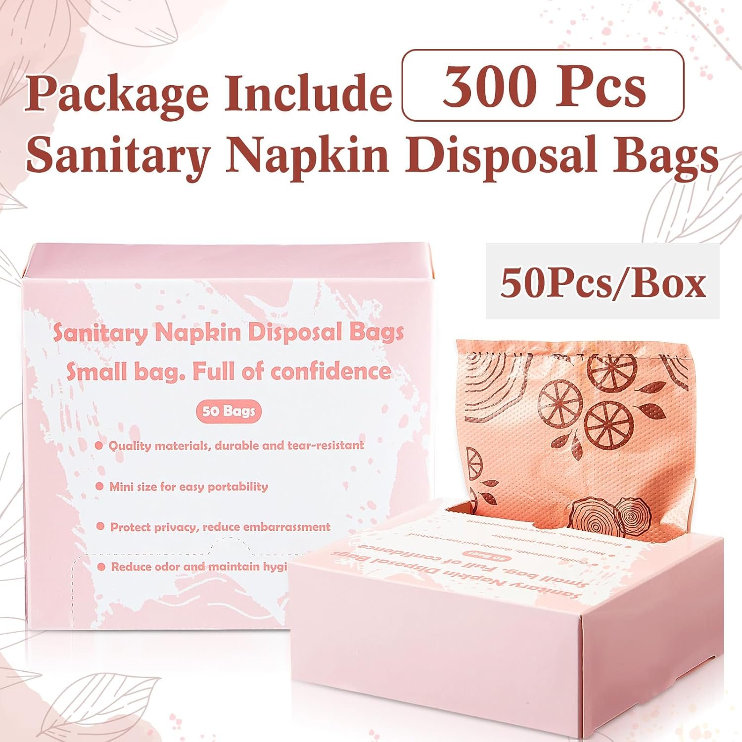 Abundant Supply for Long Term Use: you will receive 6 boxes of sanitary napkin disposal bags, each box contains 50 bags; These feminine disposal bags are conveniently packaged in compact boxes, ideal for storing at home or carrying on-the-go, ensuring you’re always prepared for any situation