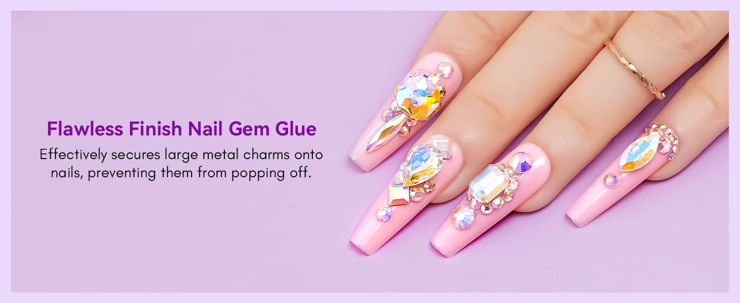 ï¬TRENDY NAIL JEWELRY GLUE GEL- The nail decorations gel glue are super sticky, excellent in securing gems jewels beads nail rhinestones on your nails, good for creating your sparkling dazzling nail art, a proper operation can bring a beautiful result for at least 2 weeks (LED required). This 3D Nail Charm Glue makes you rest assured to secure the Bling Designs. Nail Tech Best Friend.