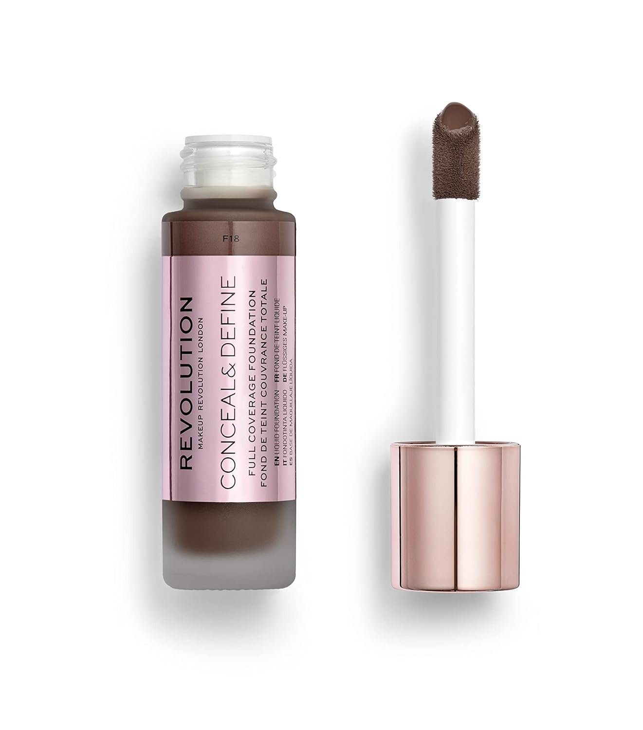 Makeup Revolution Conceal and Define Foundation, Full Coverage & Matte Finish, F15 for Dark Skin Tones, Vegan & Cruelty-Free, 0.7 Fl Oz