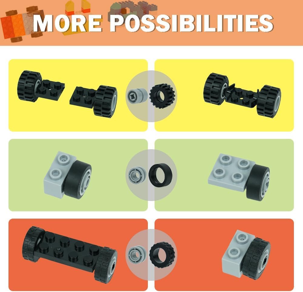 MALEKO Wheels and Axles Sets, 224pcs Car Parts and Pieces Tires Accessories Building, Construction Bulk Bricks