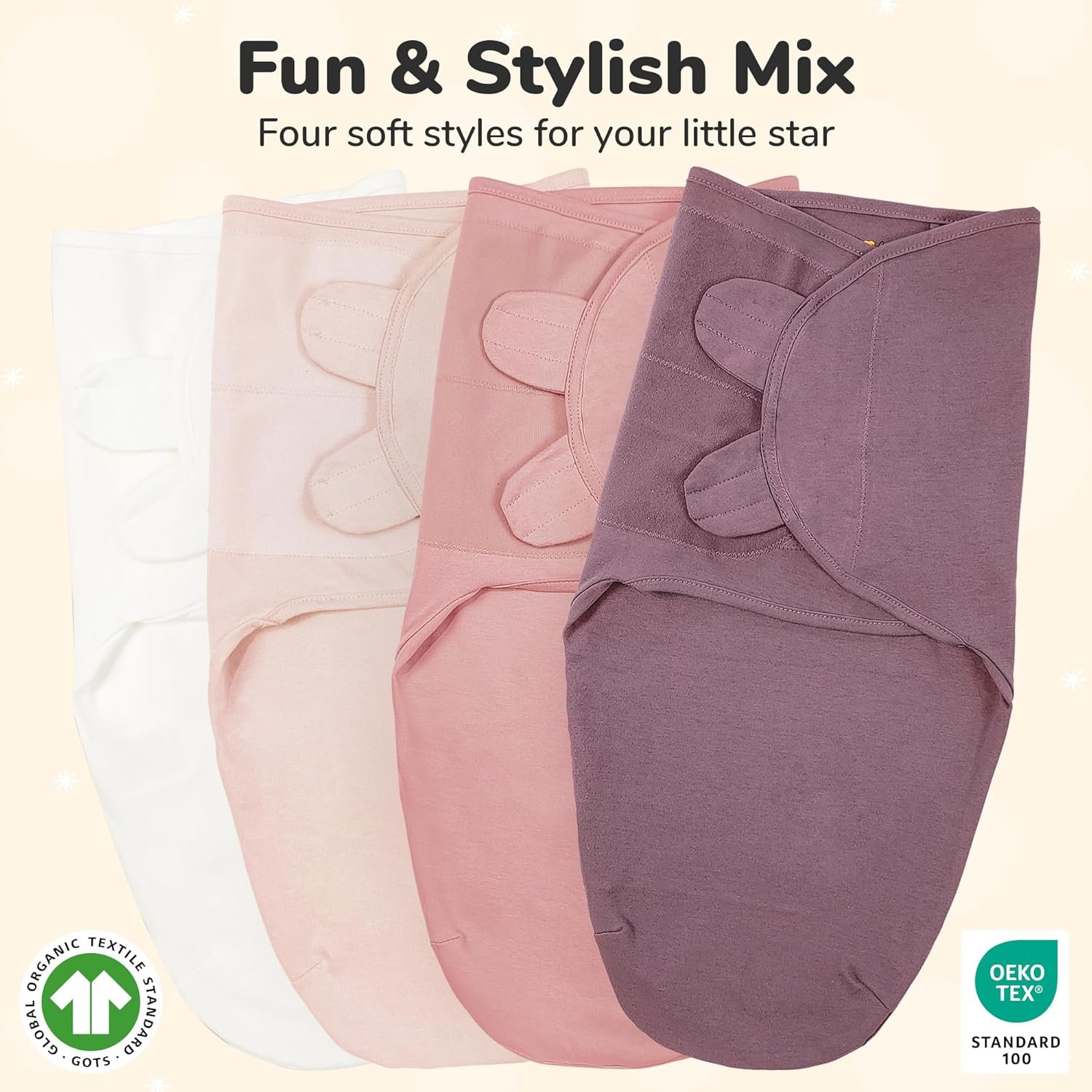 No need for any prior experience, with our swaddle blanket wraps you can easily swaddle your newborn or infant like a pro, in four simple steps.