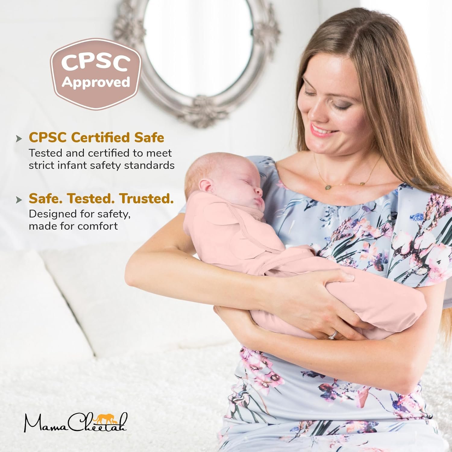 Made from super soft 100% organic cotton, Mama Cheetah swaddles offer a gentle & skin-friendly experience. Our adjustable swaddle wraps feature safe hook and loop closures for baby’s arms to be swaddled snug to body and helps baby feel safe, secure and comfy at night.