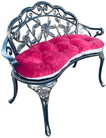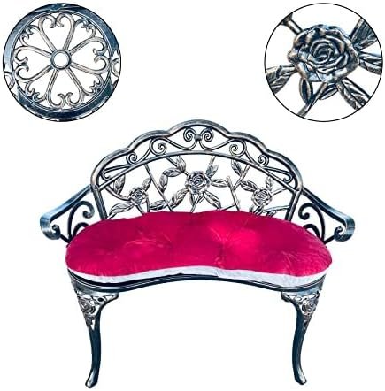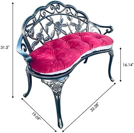Mandolin Outdoor Bench, Anti Rust Cast Aluminum Patio Bench, Carved Rose Loveseat for Backyard, Porch, Balcony, Lawn (Copper with Cushion)
