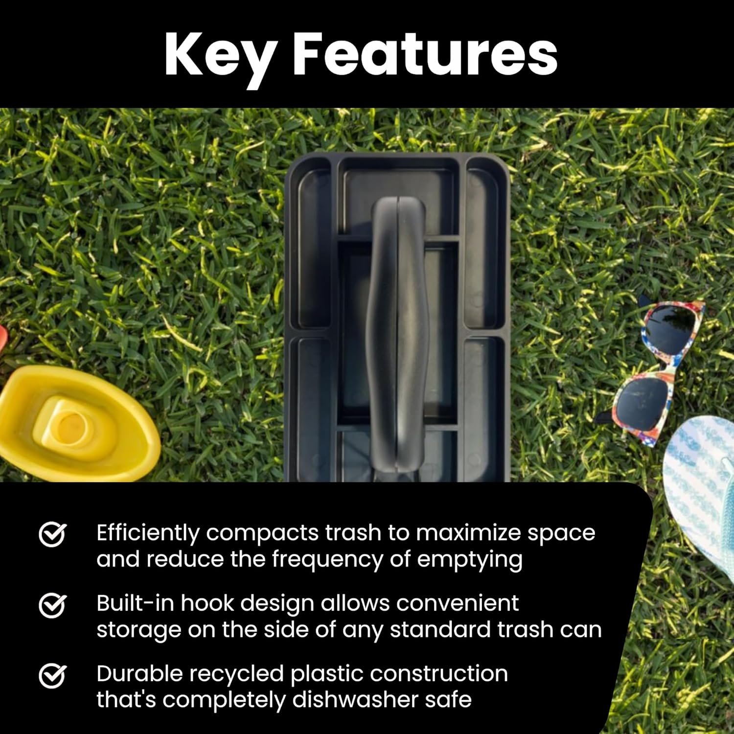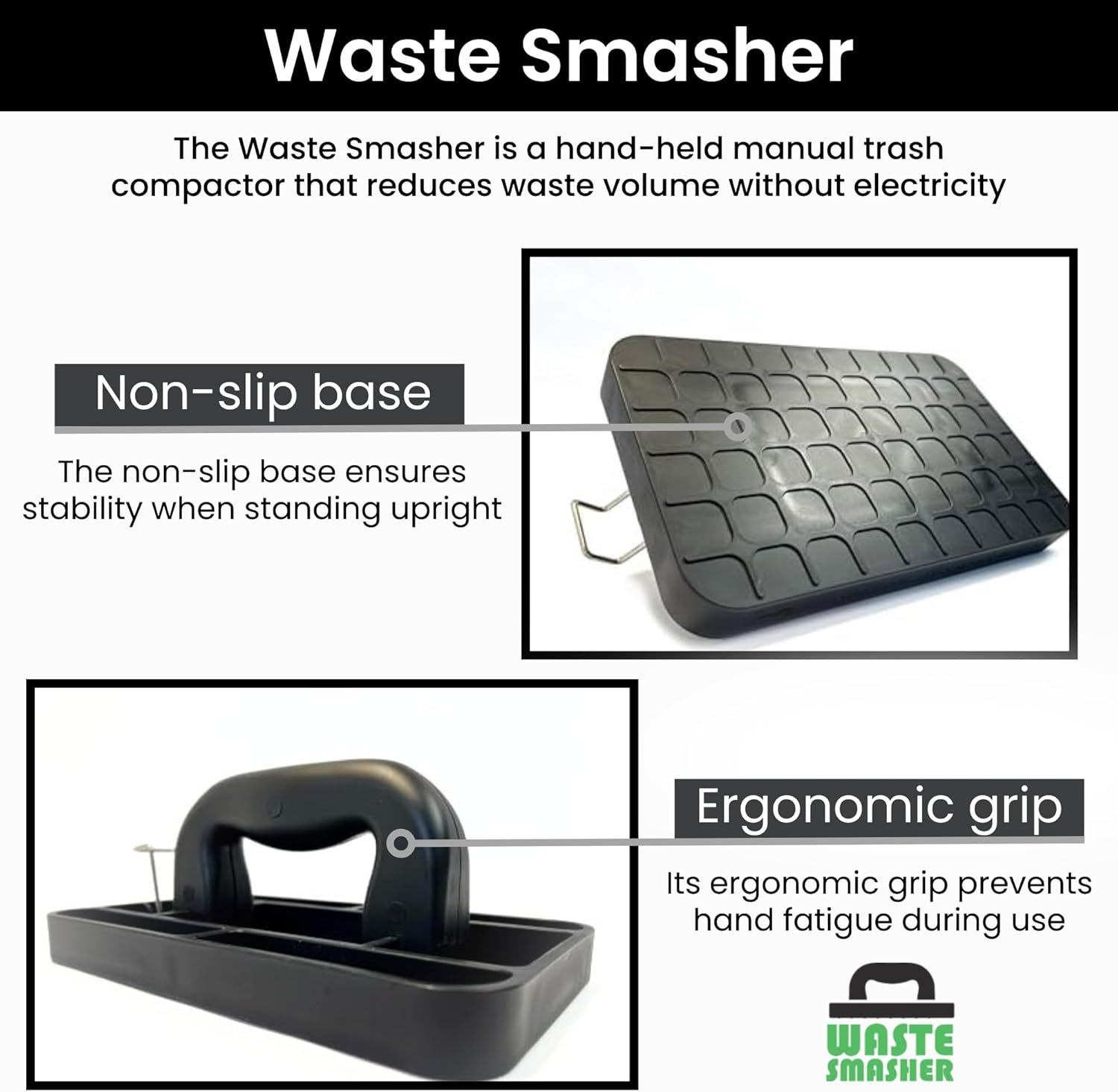 Space Saving Solution: Our trash smasher tool helps maximize space in each trash bag, allowing you to fit more waste before taking it out. The compacting action means fewer trips to the curb and saves money by reducing the number of garbage bags you use annually.
