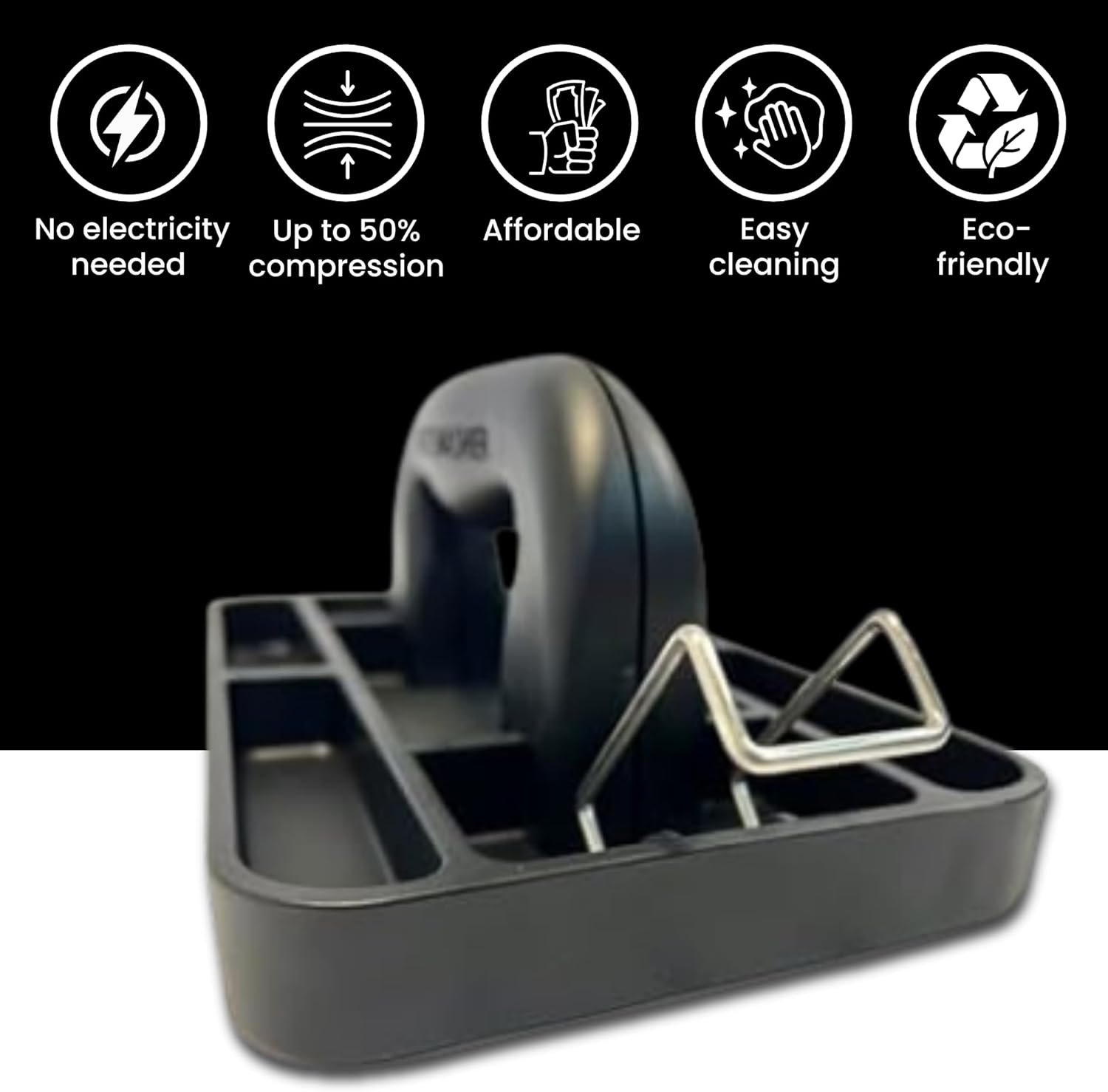 Efficient Design: Made from durable recycled plastic, this manual trash compactor effectively reduces the volume of waste in your trash can by up to 50%. Compress your garbage with ease using our ergonomic hand-held design that requires no electricity or batteries to operate.
