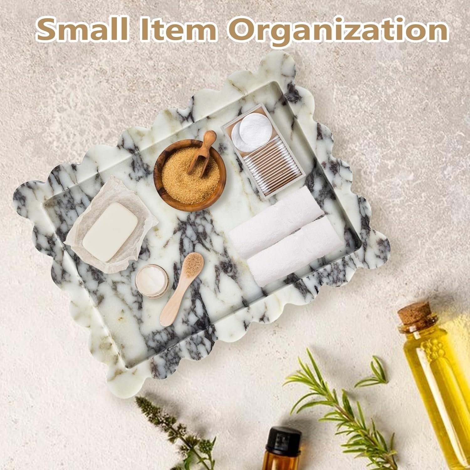 【Natural Marble Tray – Timeless Elegance for Any Space】Crafted from 100% natural marble, this tray combines sophistication and durability, with unique veining and patterns that make every piece one of a kind. The polished surface and scalloped edges add a luxurious touch, making it a stylish centerpiece for any room in your home or office.