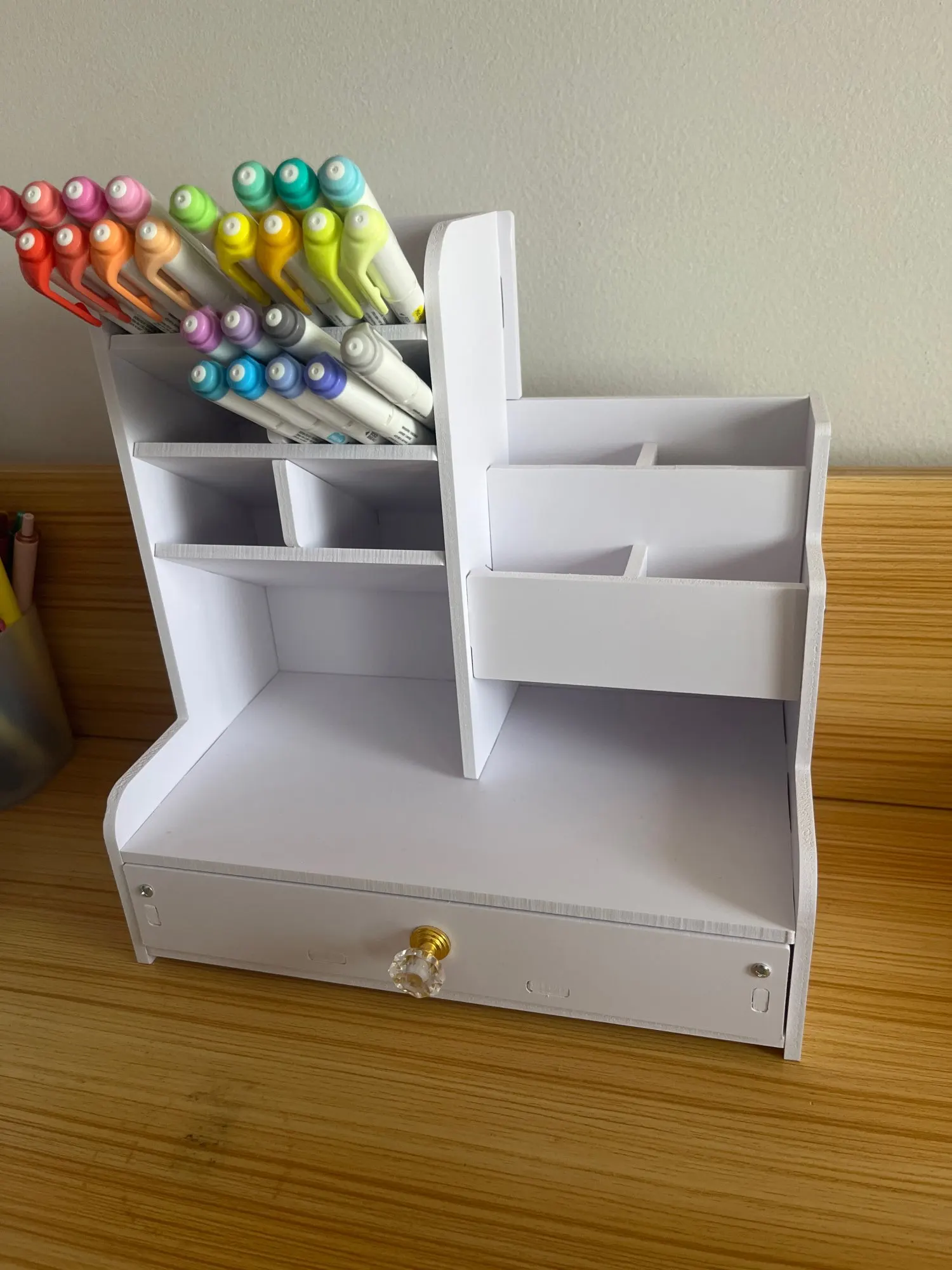 Pretty good! Turned out well. The material is a hard foam type of thing so you have to be careful because it could easily be dented. I also wasn’t able to construct it following the order of the steps in the instructions. Once i started just doing it in my own order, it got way easier. But it turned out well! My full mildliner collection (all 41 colors) can easily fit in the slanted pen slots on the side, with room for more.