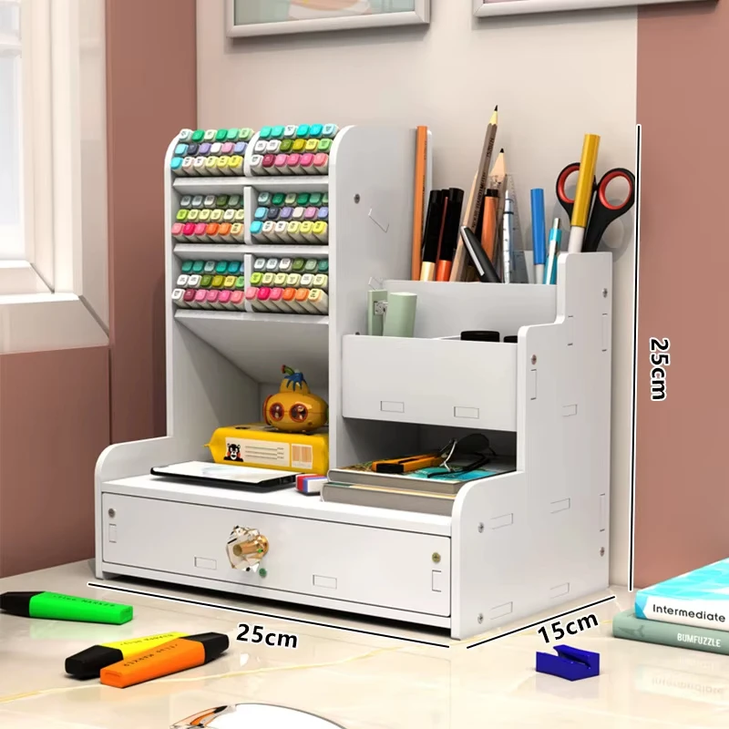 Mark Pen Pencil Holder Wooden Desk Organizers Shelves Accessories Desktop Stationery Organizer Bookshelf Home Office Storage Box