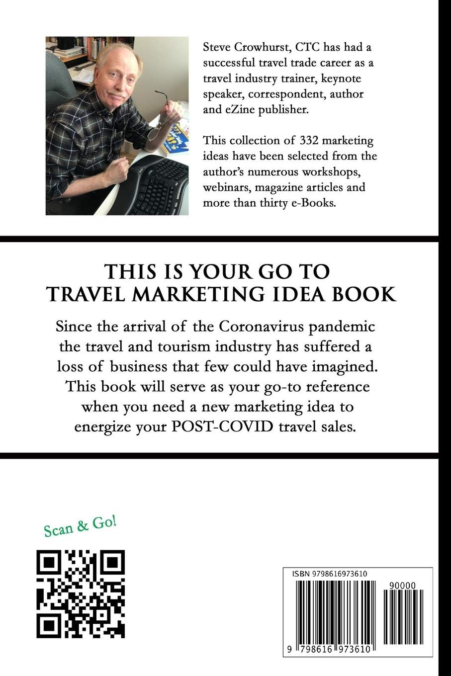 Marketing Ideas for Travel Agents is a compendium of practical marketing suggestions designed to help boost travel sales in a POST-COVID travel marketing environment. Written by travel trade author, trainer, and speaker, Stephen Crowhurst, the author has drawn on his life-long career in retail travel and his dedication to collecting new business generating ideas that are low cost and easy to implement. Crowhurst’s tell-it-like-it-is writing style is easy to understand, laced with good humour, a few puns, and anecdotes from his wide-ranging career. This go-to desk reference provides 332 marketing ideas that blend traditional travel marketing methods with new and advanced techniques. From activities to commission mark-ups, agency names & claims, window dressing, banners, customer service, ethnic marketing, generational marketing, bucket lists, publishing guide books, and supporting what makes the world a better place, such as the Black Lives Matter movement and our front line healthcare workers, Crowhurst has delivered a guide that the retail travel trade, wholesalers, suppliers and departments of tourism will find indispensable.