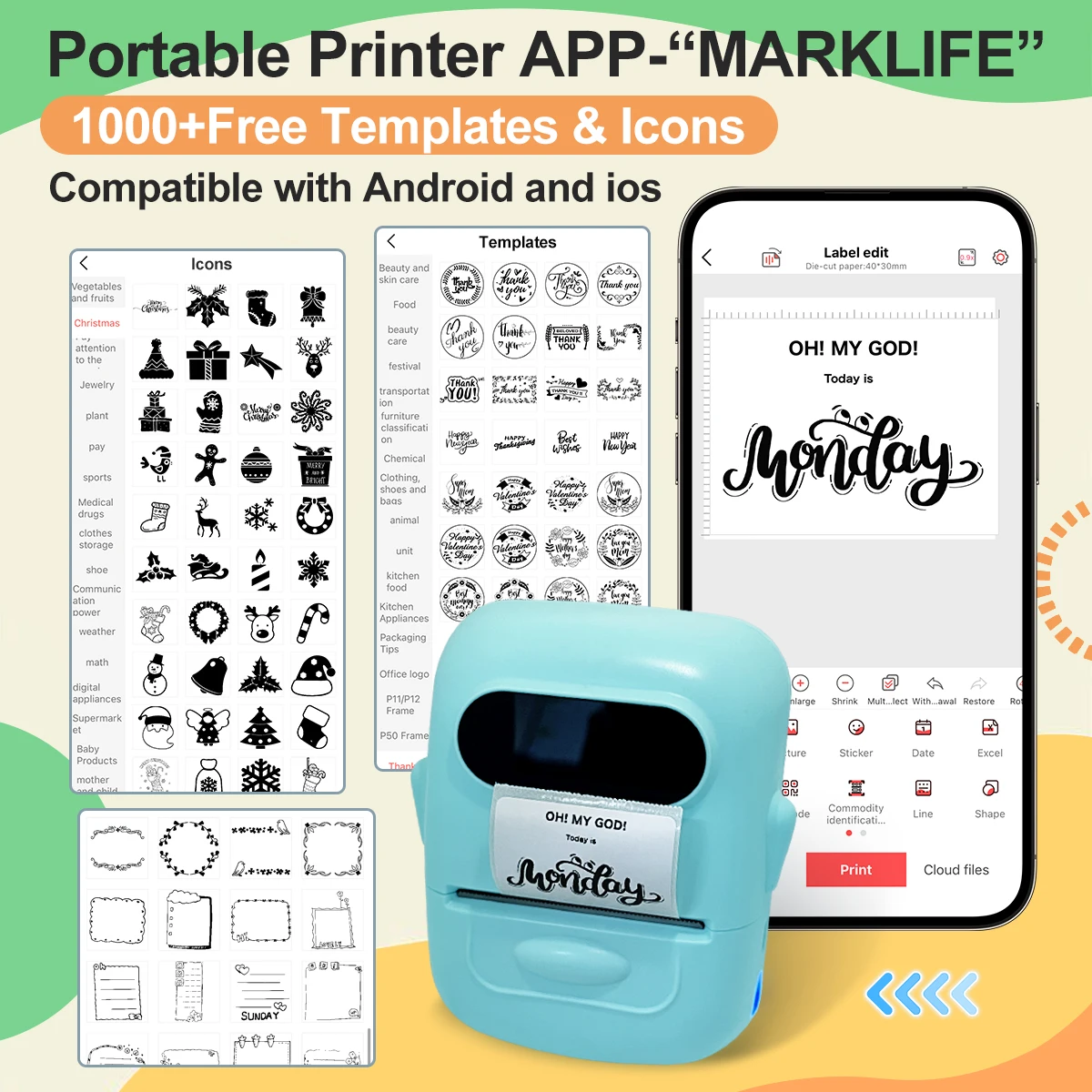 MARKLife P50 Thermal Wireless Label Printer Portable Bluetooth Sticker Mini Printer Barcode Label Maker Price Tag Printers DIY