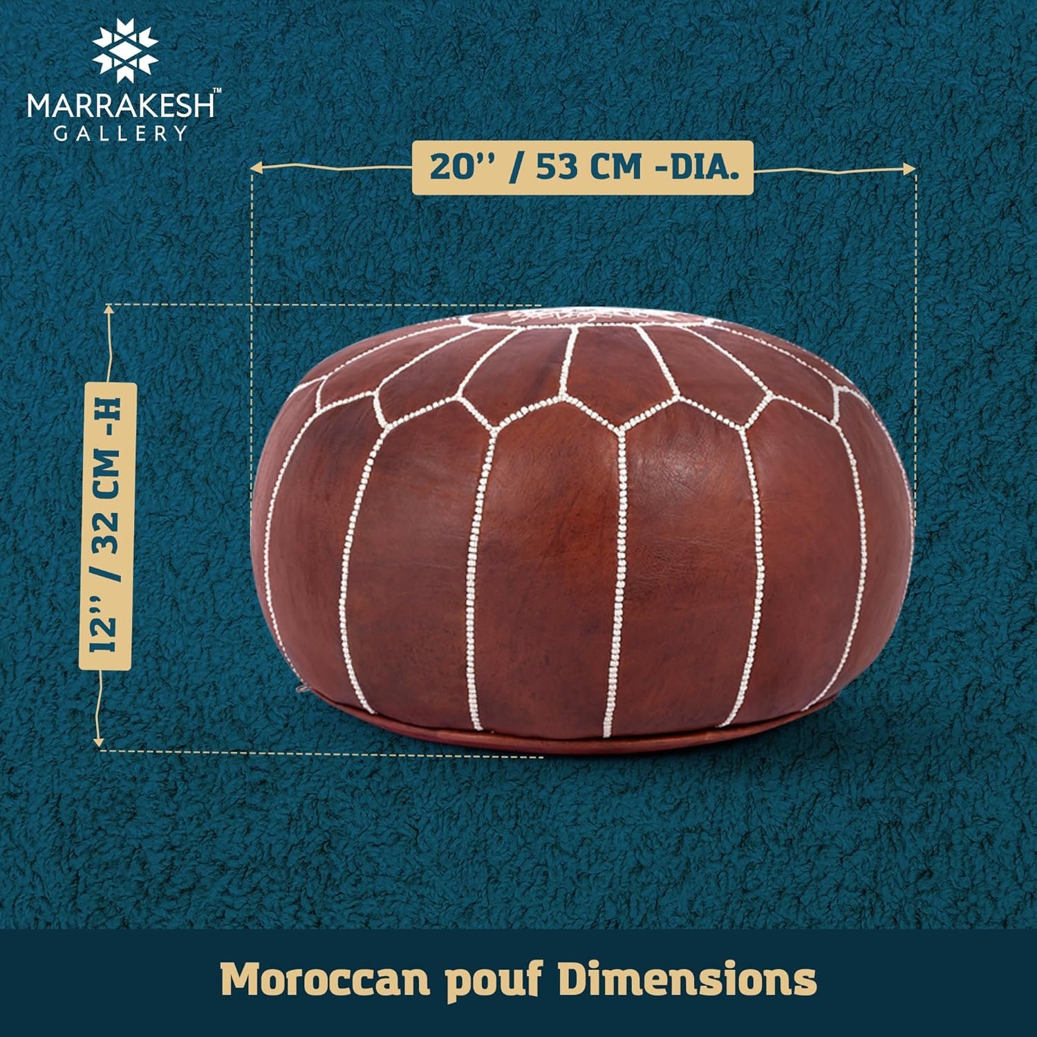Handcrafted by Artisans in Marrakesh – Made from 100% genuine soft leather, this Round Leather Cover pouf ottoman features exquisitely detailed, hand-stitched embroidery with a unique design down to the finest details
