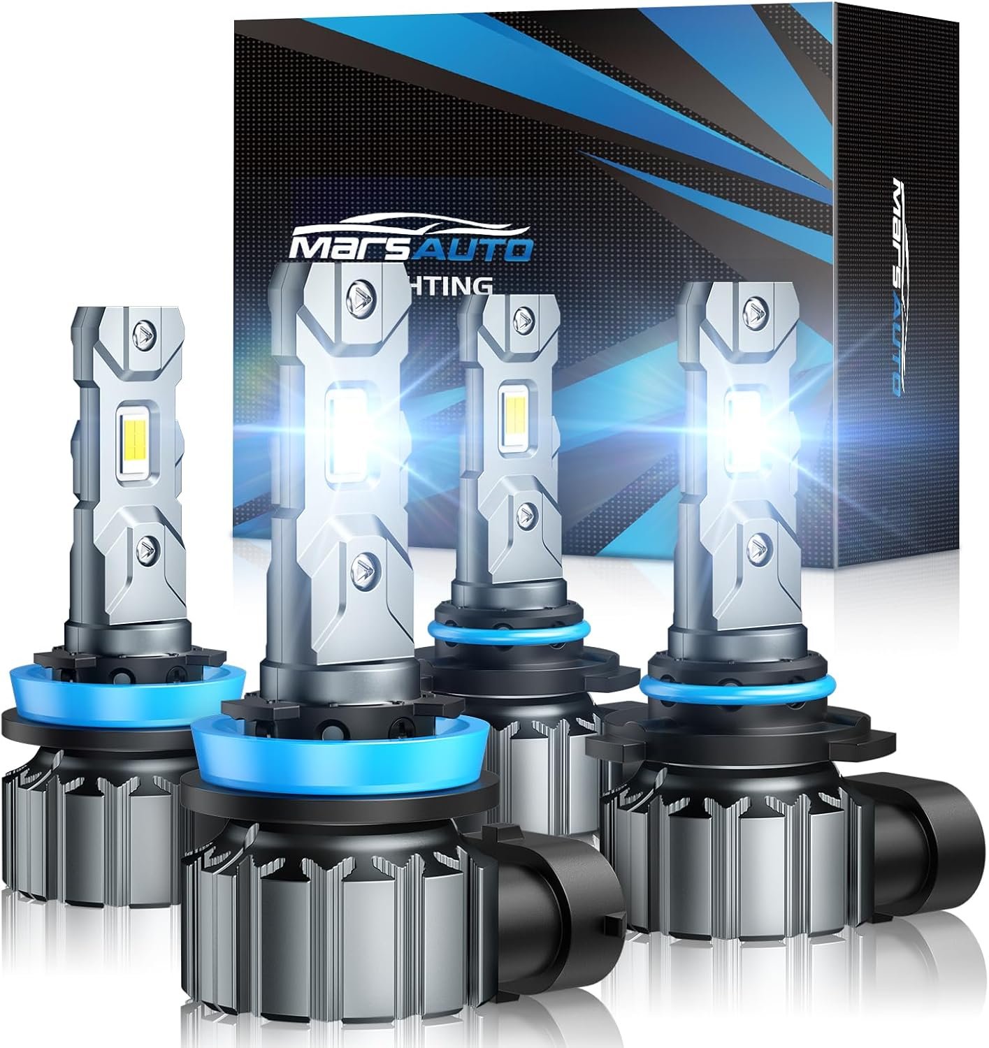 Marsauto M1S 9005/HB3 H11/H8/H9 Light Bulbs Combo, 800% Super Brighter H11 9005 Bulbs or Fog, 6000K HB3 H9 Cool White, 3 Min Plug and Play Lights Combo, IP68, Pack of 4