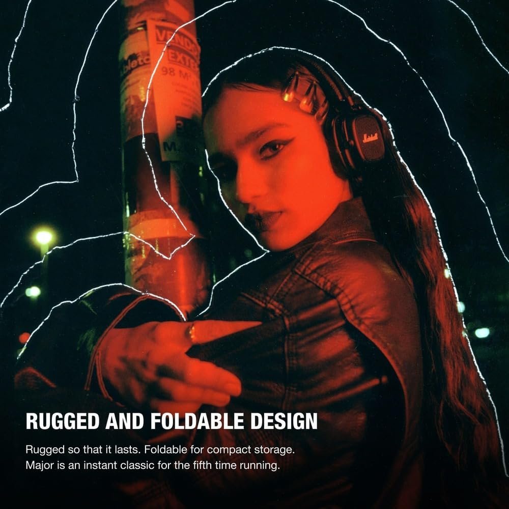 True icons never die; they just get better with time. Major V is no different. From its explosive Marshall signature sound to its everlasting design, every detail of these headphones has been painstakingly considered and refined. Featuring 100+ hours of wireless playtime combined with a rugged and foldable design, Major V is best paired with your next great adventure.