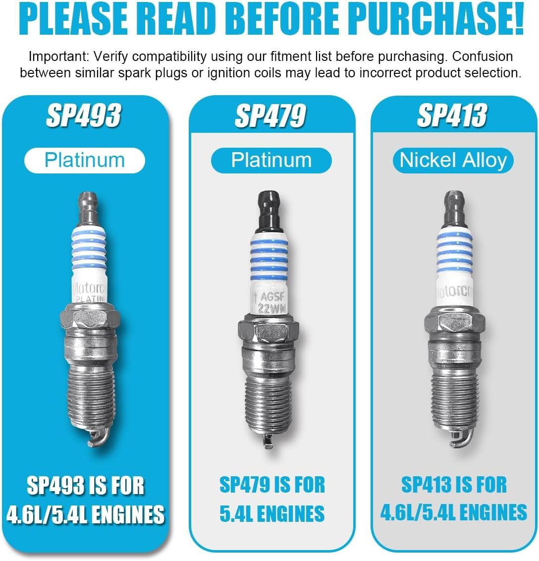 MAS Set of 8 Ignition Coil DG508 and Motorcraft Spark Plug SP493 compatible with Ford Lincoln Mercury 4.6L engines DG457 DG472 DG491 F523 3W7Z12029AA 1L2U12029AA 1L2U12A366A