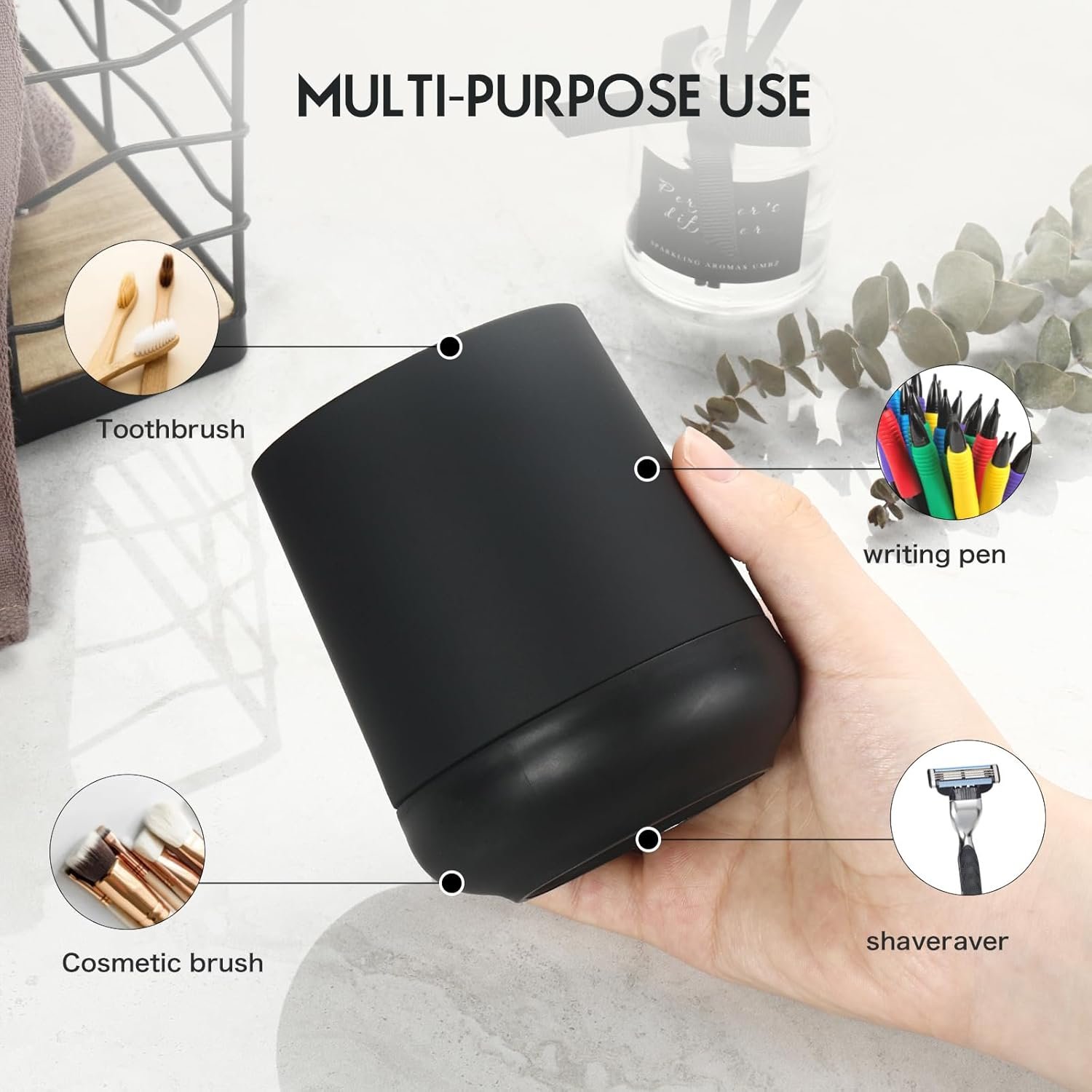 Versatile Storage Solution: With ample space, this holder is perfect for organizing toothbrushes, electric toothbrushes, toothpaste, and other bathroom essentials, helping to keep your countertop tidy and clutter-free.