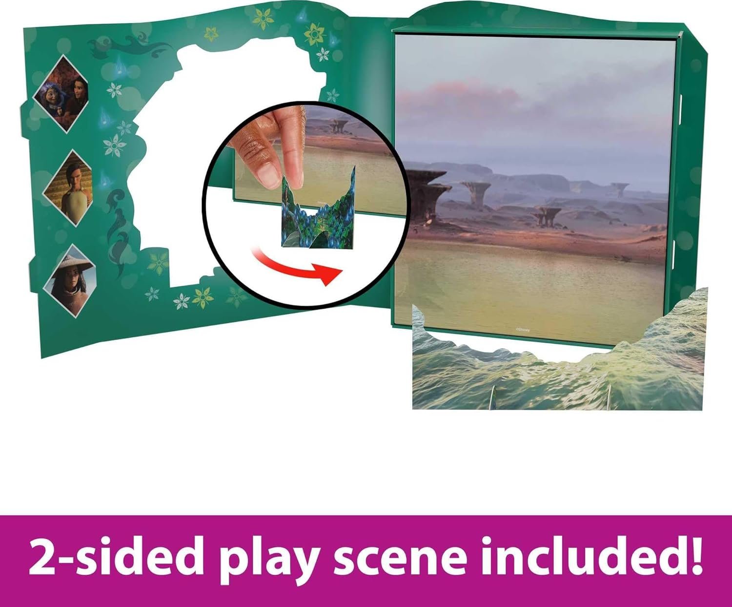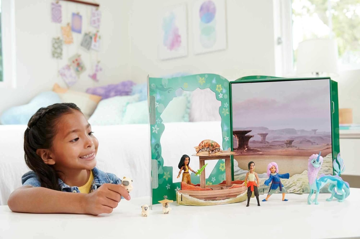 Mattel Disney Princess Toys, Raya Classic Storybook Set with 7 Characters Including Raya, Human Sisu & Dragon Sisu Small Dolls, Inspired by the Movie
