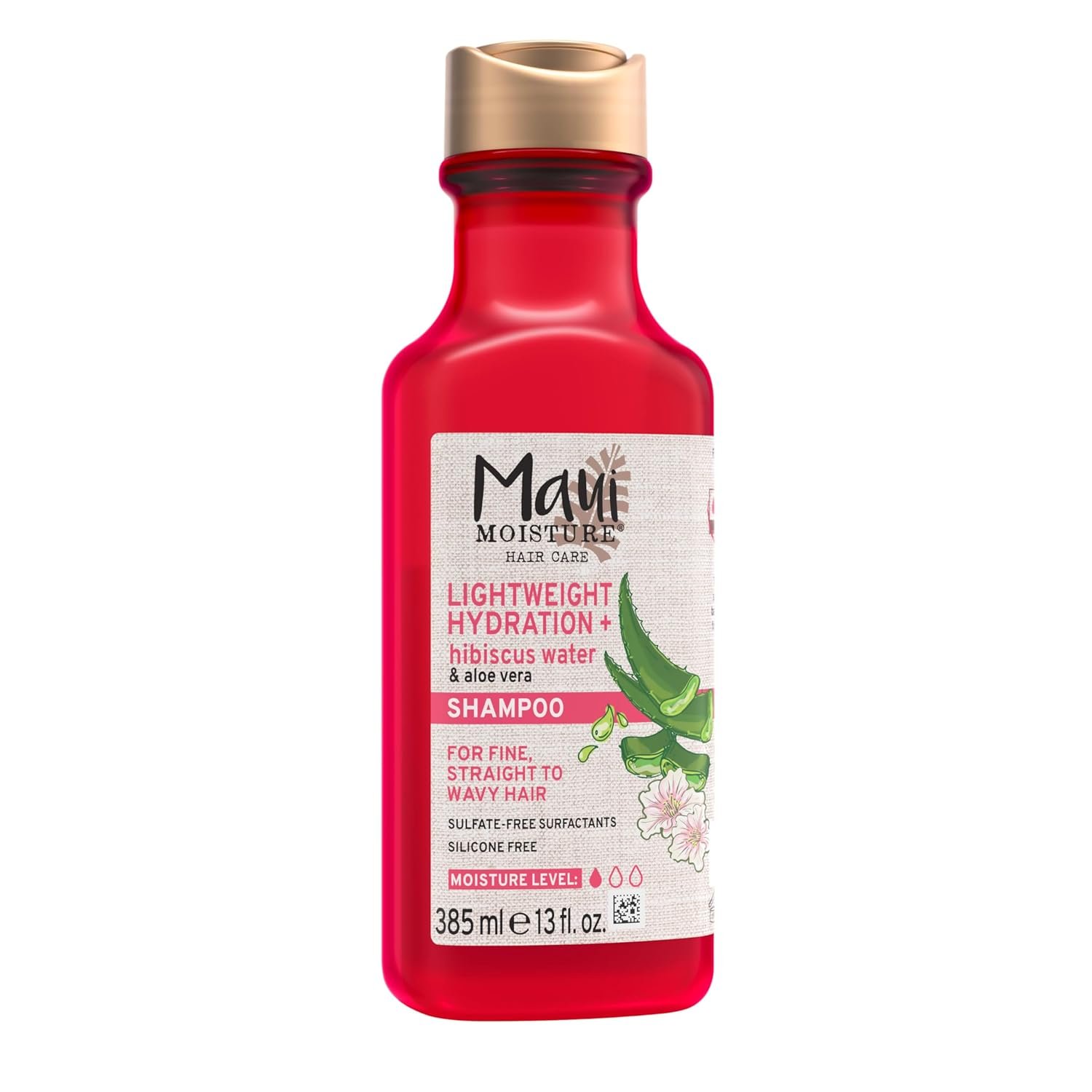 Maui Moisture Lightweight Hydration + Hibiscus Water Shampoo, Moisturizing Aloe Vera Shampoo Softens Curly Hair, Vegan & Sulfate-Free Surfactants, 13 Fl Oz