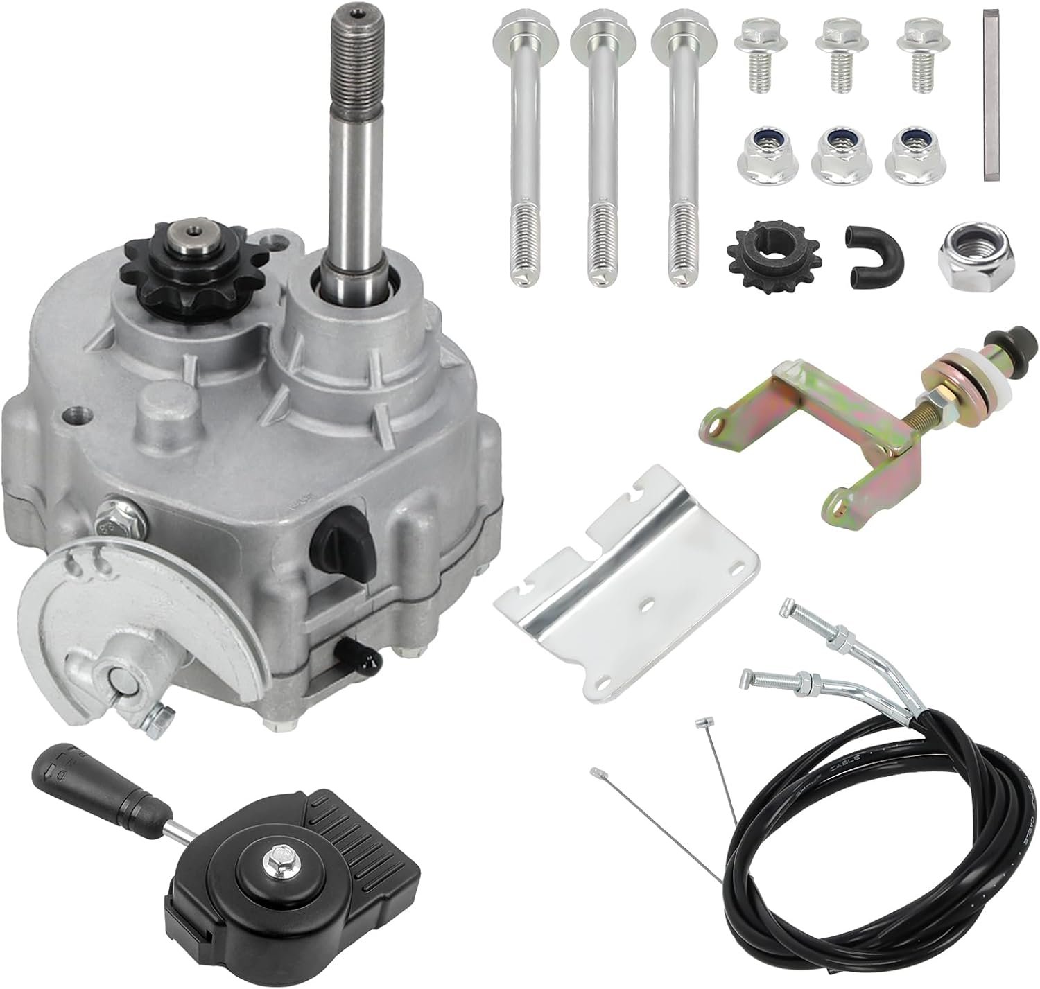 ▶Complete Accessories-1x Forward / Reverse Gearbox with 3/16″ Keyway;2x Mounting Plates;1x Shifter Disc;2x Shifter Cable;1x 10T and 12T Sprocket;1x Shifter Assembly