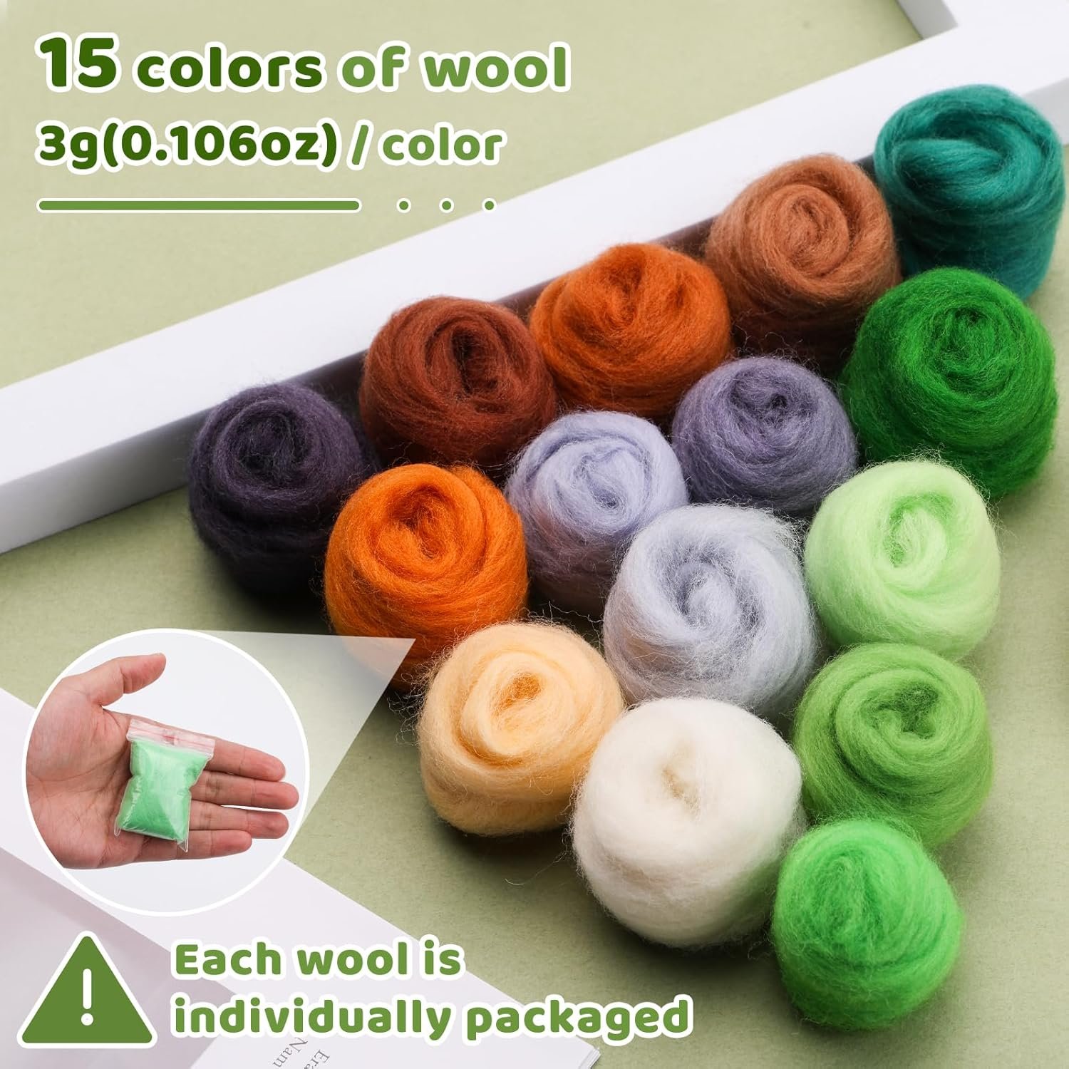 Intimate Design: 15 individual packages, each roll is equipped with an independent resealable packaging bag, each bag is about 3g. This can prevent the wool from loosening, and the color is not easy to be confused, and it is convenient to find the color you want