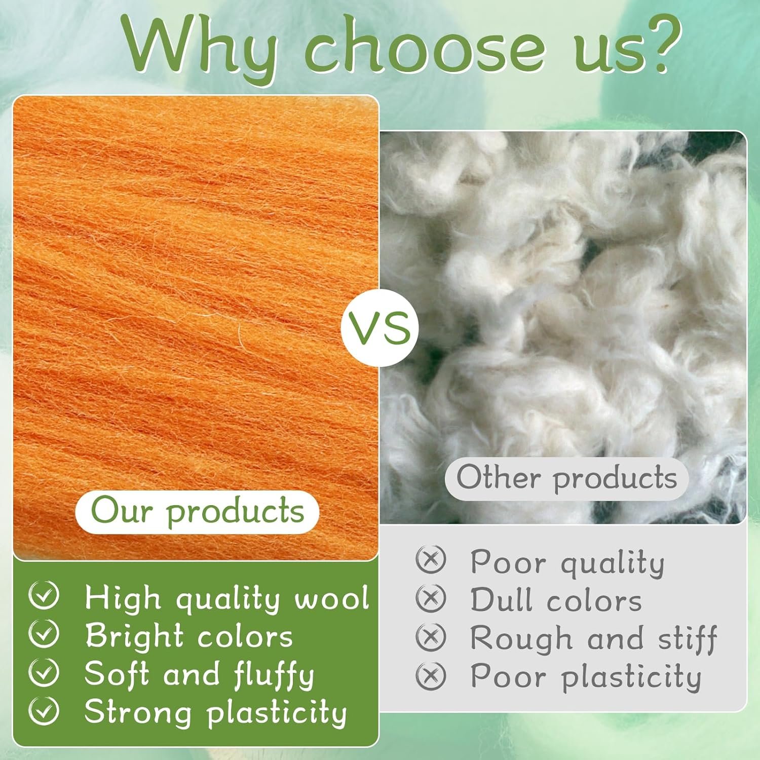 High-Quality Materials: Our Needle Felting Wool is made of high-quality fiber wool, is soft and fluffy and has good plasticity. They can be easily and quickly shaped into any shape you want, or you can quickly tear off the pieces for felting. All kinds of wool are suitable for felting beginners