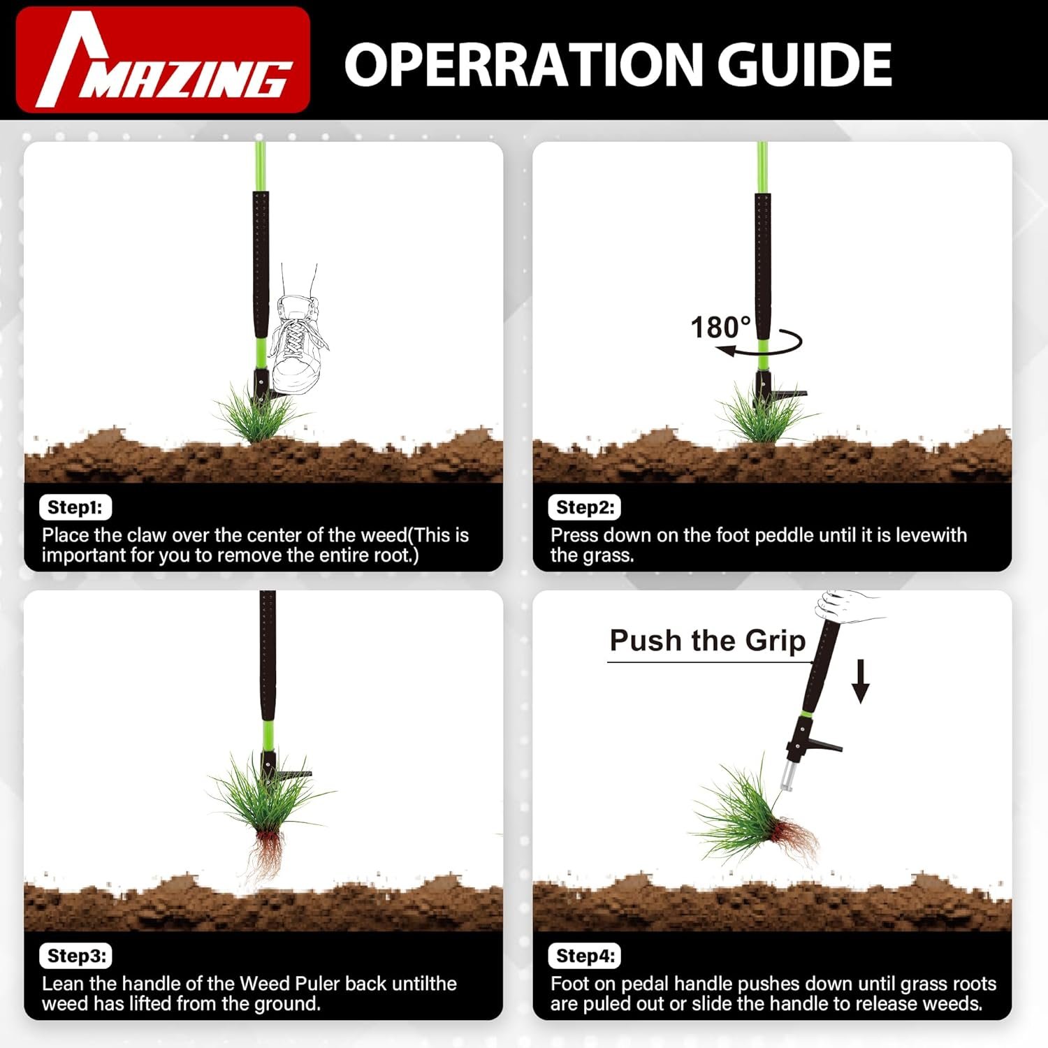 Efficient Weeding: MAZING Weed Removal Tool is suitable for most users. At the heart of easy weeding is an auto-rebound ejector that deftly pulls out weeds and releases them, efficient and environmentally friendly. Recommend wearing gloves when using.