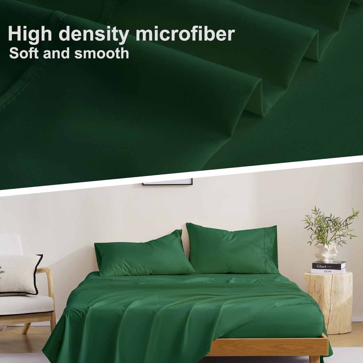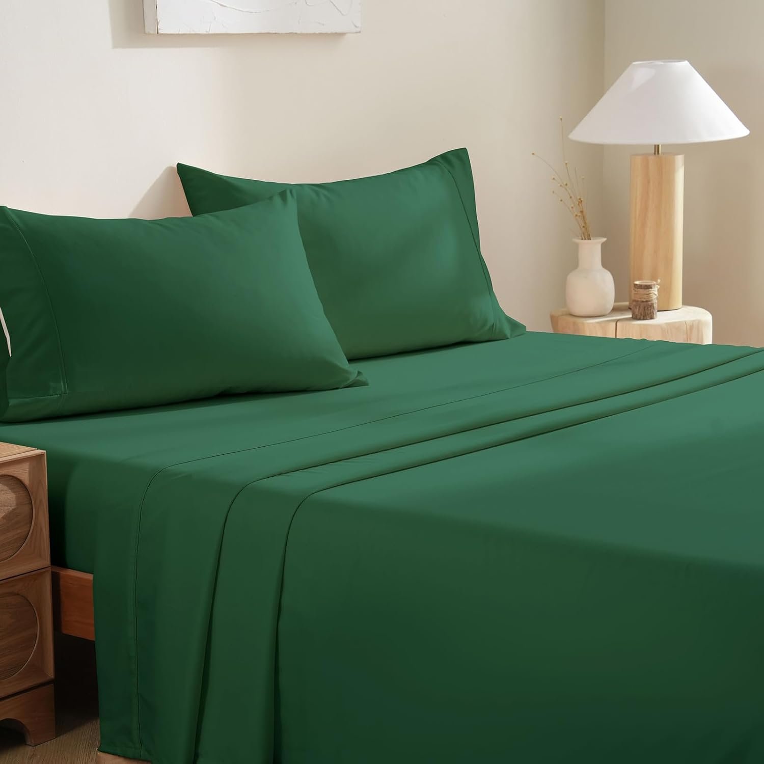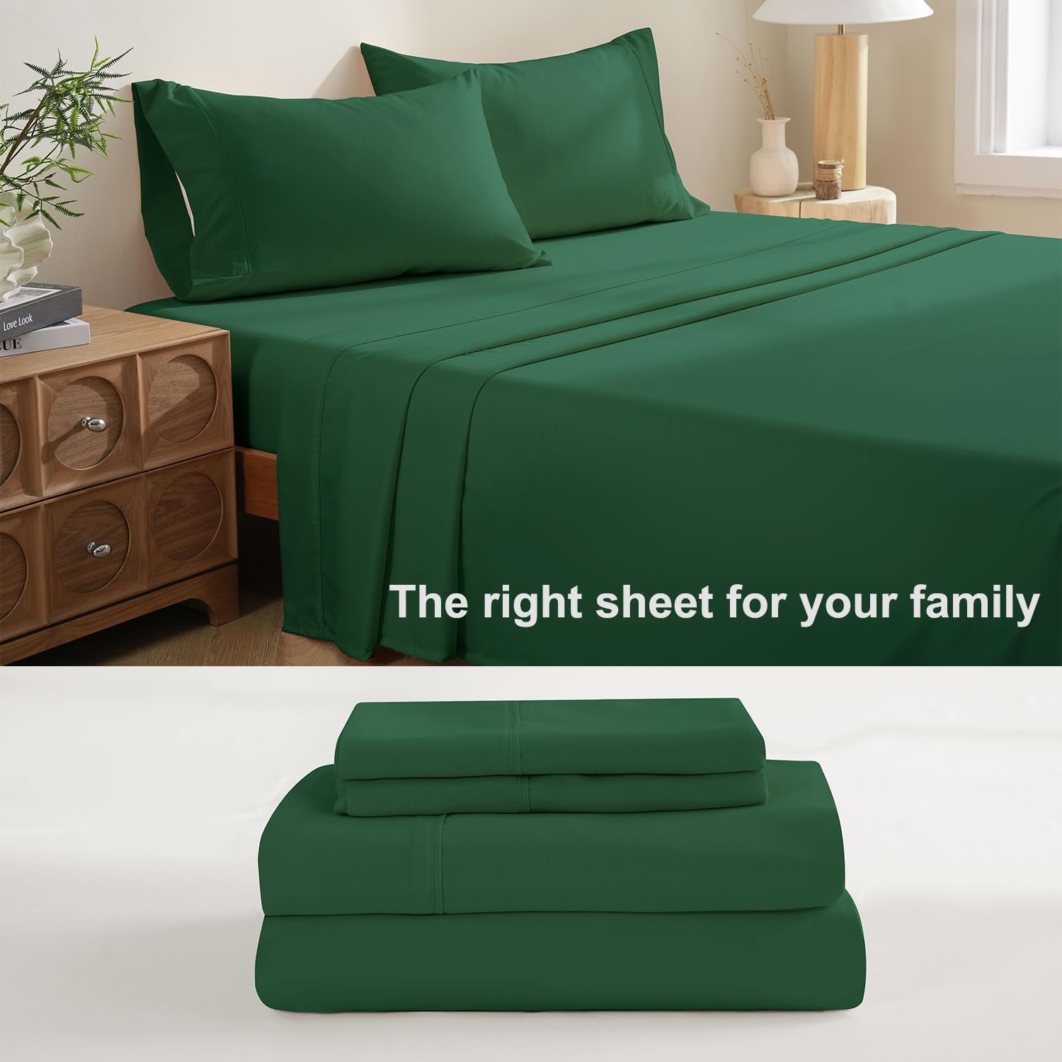 COMPLETE BEDDING SET – Redefine your bed with our Full sheet set. The 4-piece set includes 1 x flat sheet (81″x96″), 1 x fitted sheet (54″x75″) and 2 matching pillowcases (20″x30″). The Forest Green color adds an elegant touch to your room.