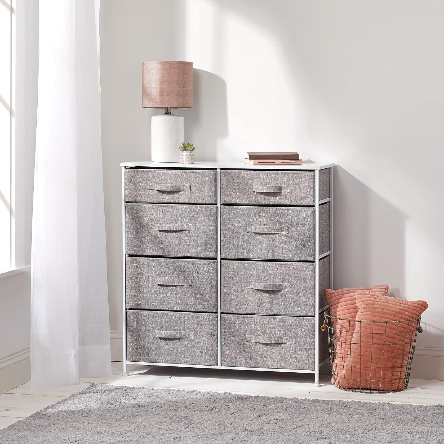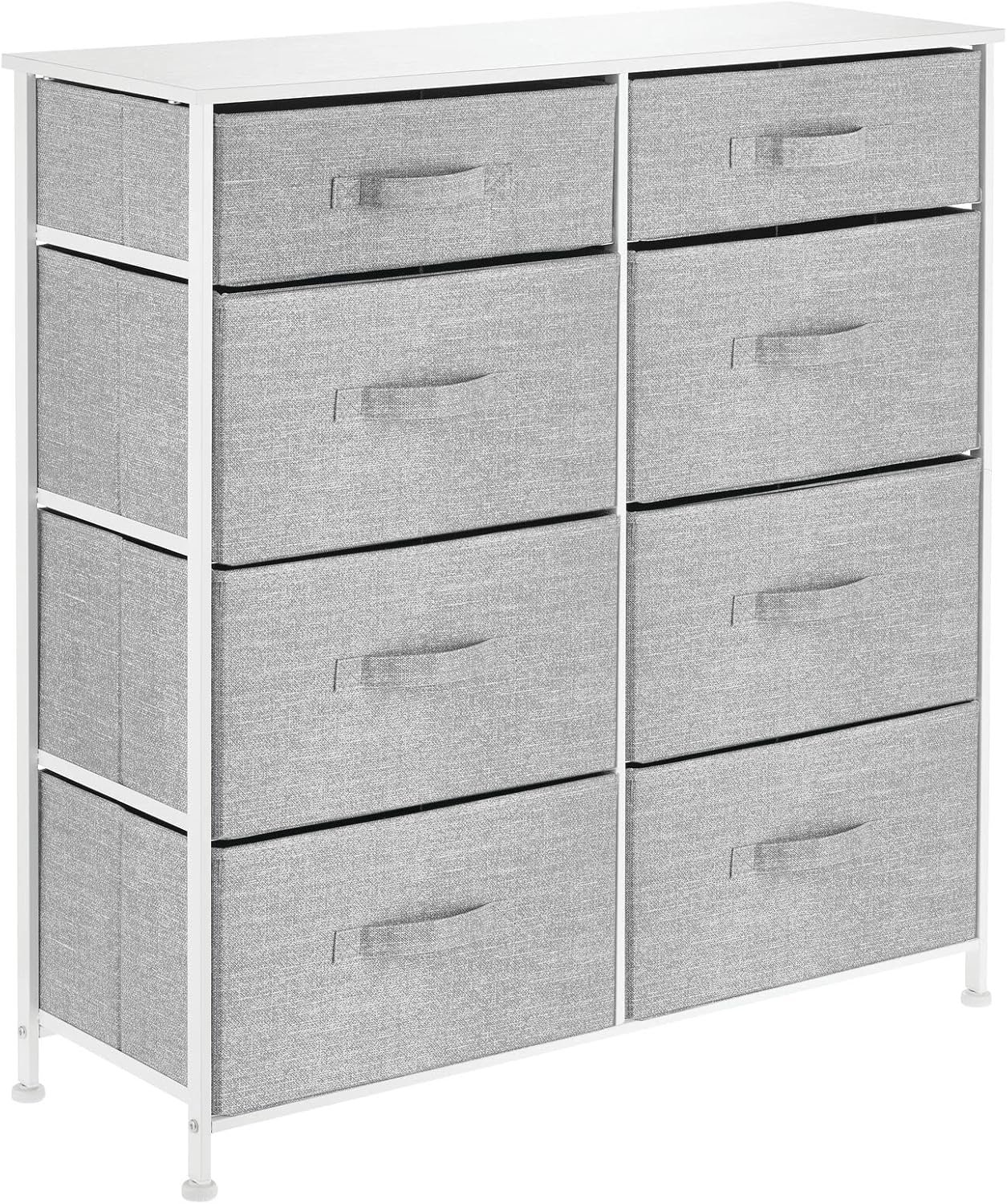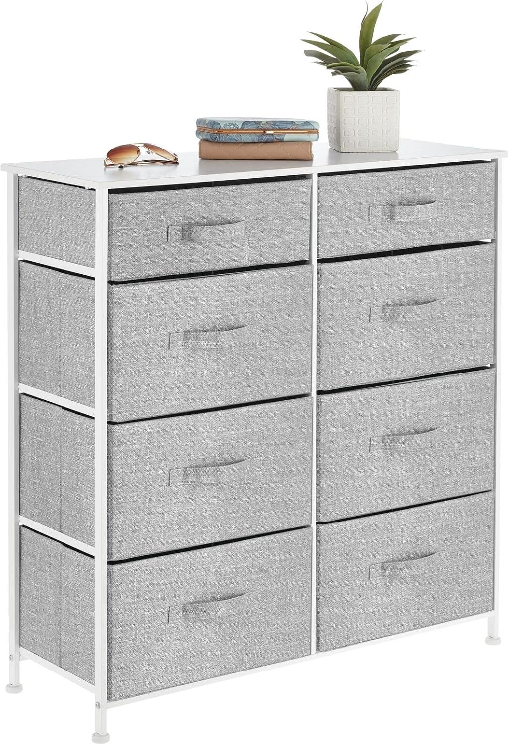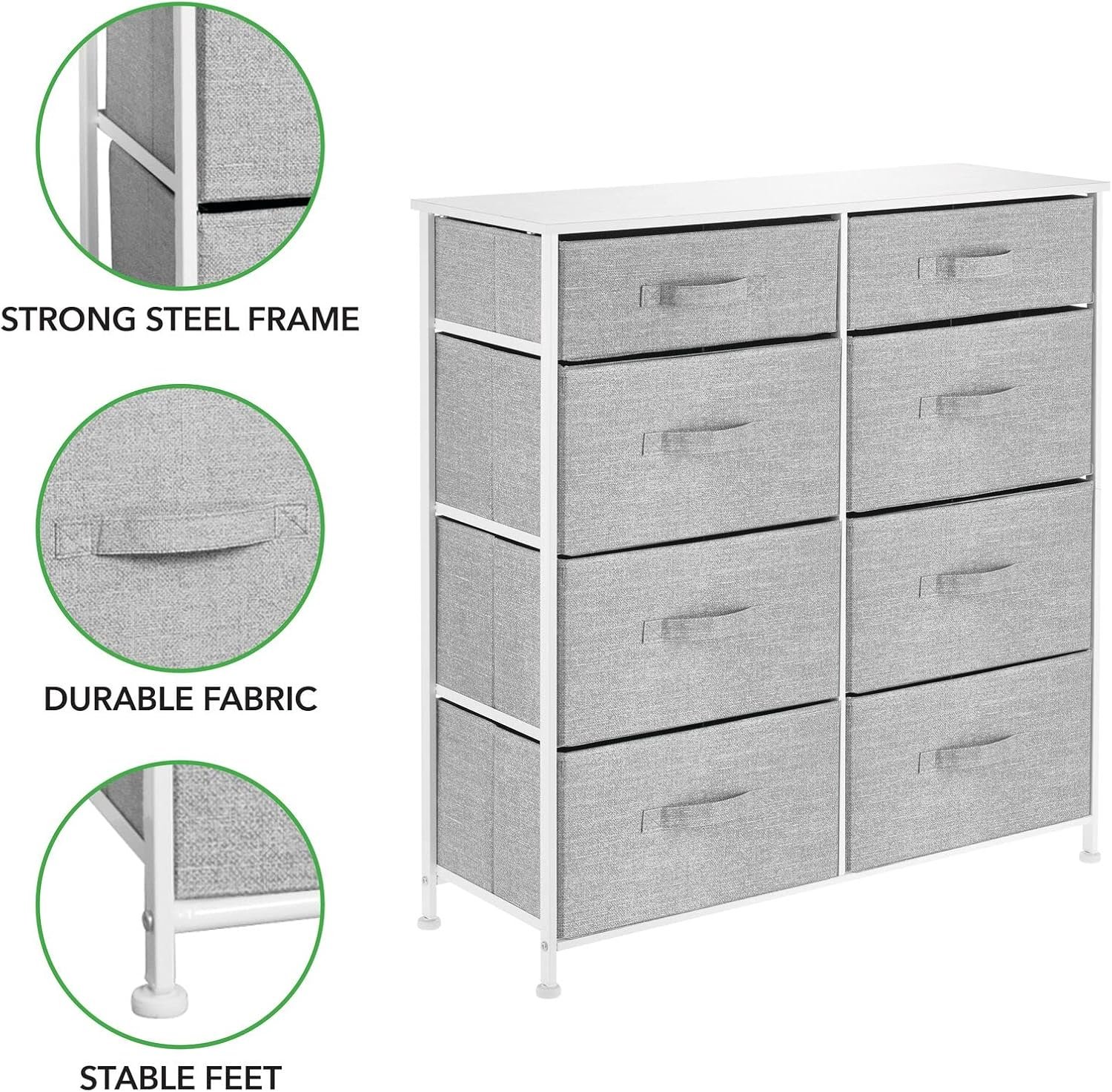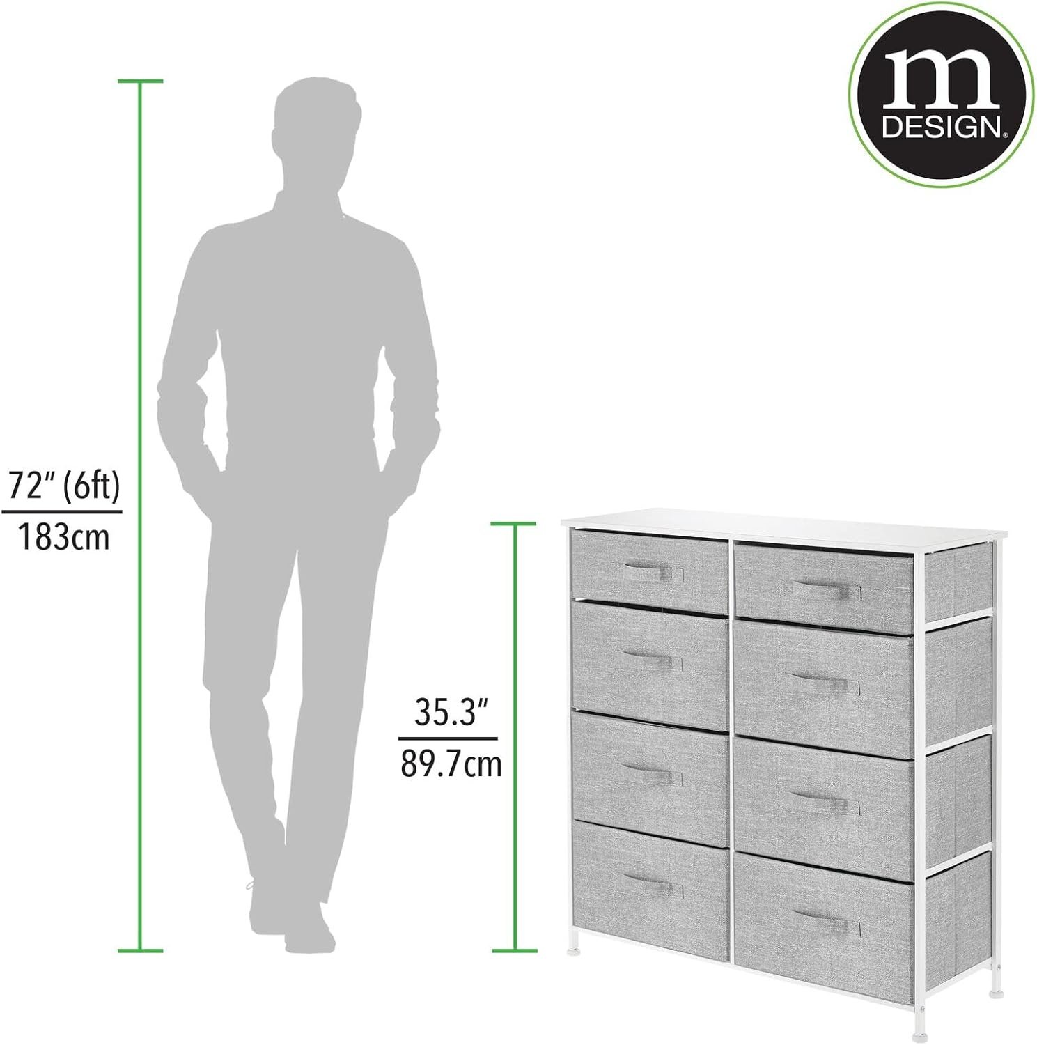 mDesign Tall Steel Frame/Wood Top Storage Dresser Furniture Unit with 8 Slim Removable Fabric Drawers, Large Bureau Organizer for Bedroom, Living Room, Closet – Lido Collection, Gray, Pack of 1