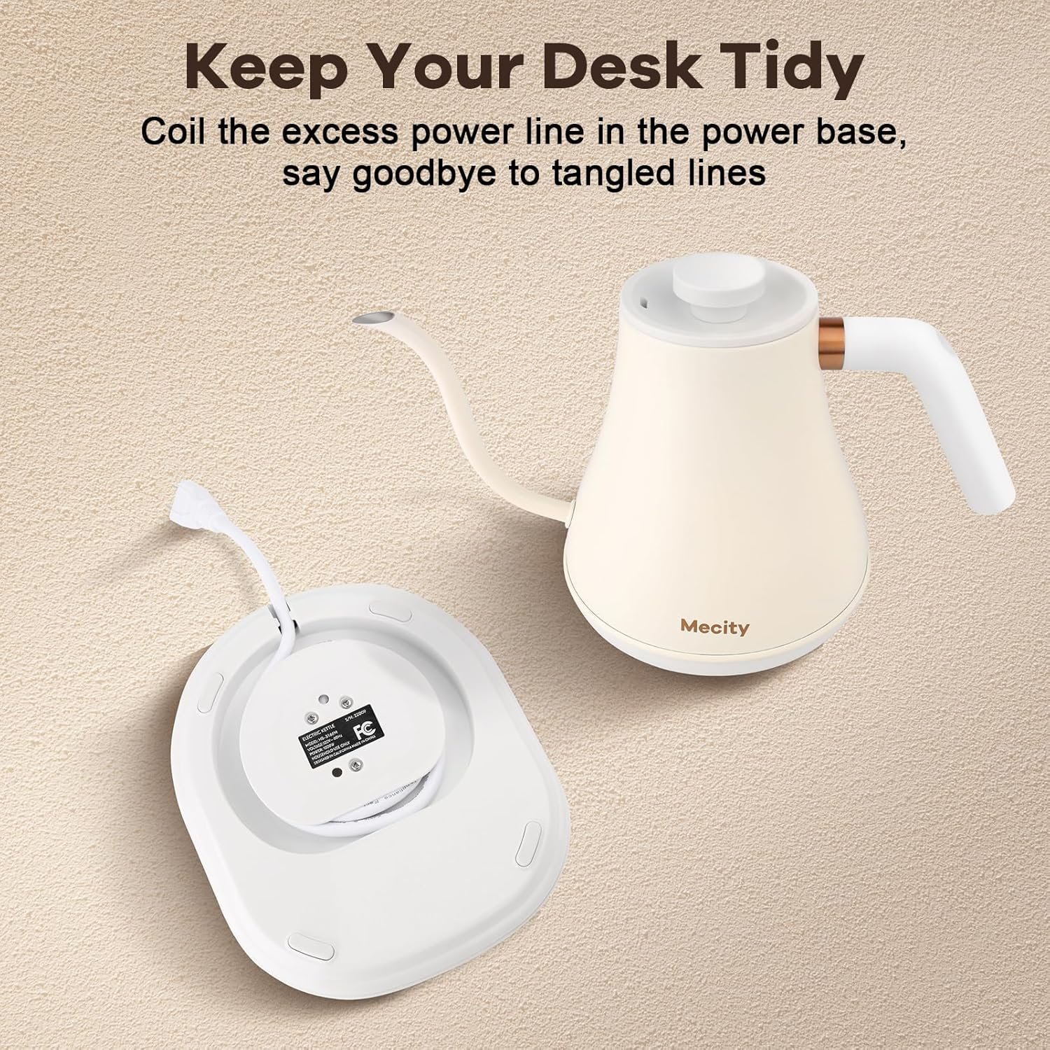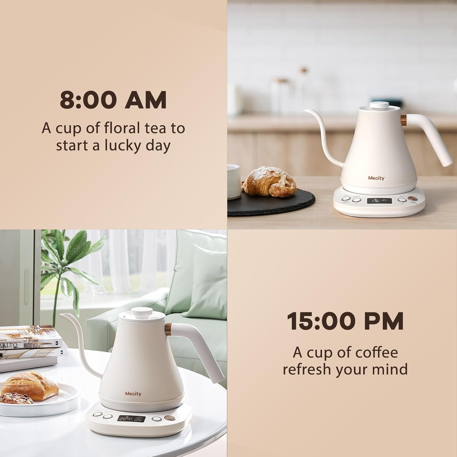 Mecity Electric Gooseneck Kettle With Keep Warm Function & LCD Display Automatic Shut Off Coffee Kettle Temperature Control Pour Over Kettle 1200 Watt, 0.8L, 120V, Off White