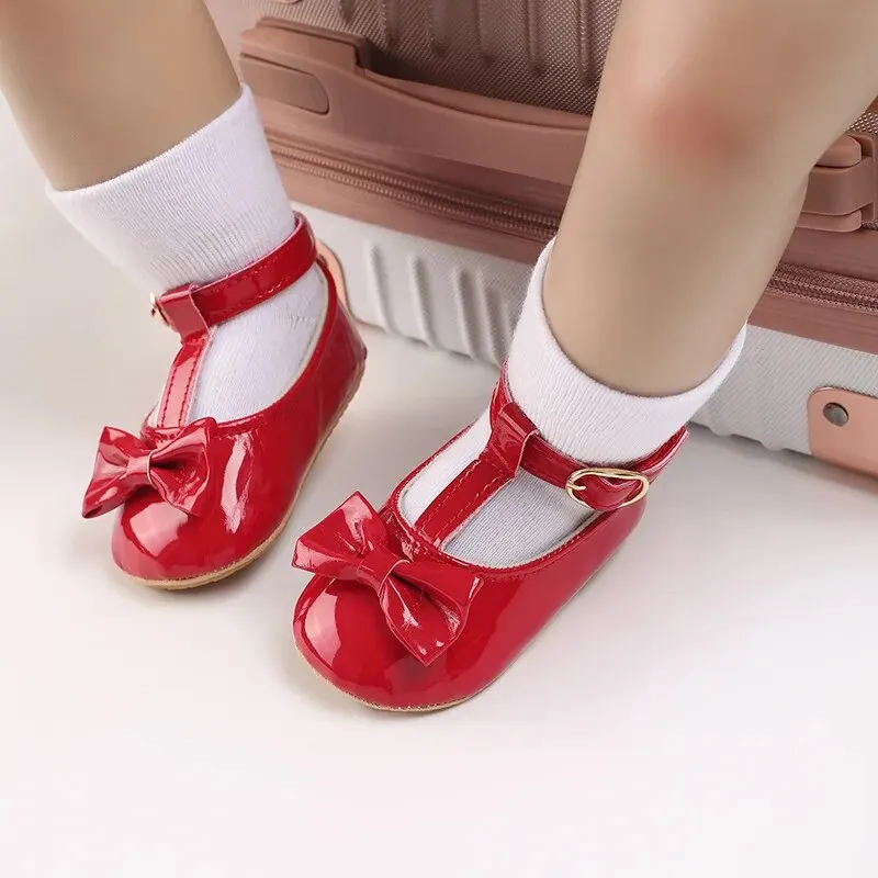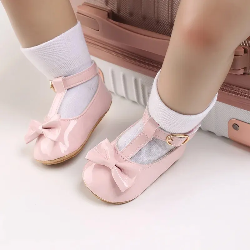 Meckior 2024 New Baby Girls Shoes Princess Choreography Cute Bow PU Anti-slip Soft Rubber Bottom First Walker Toddler Crib Shoes